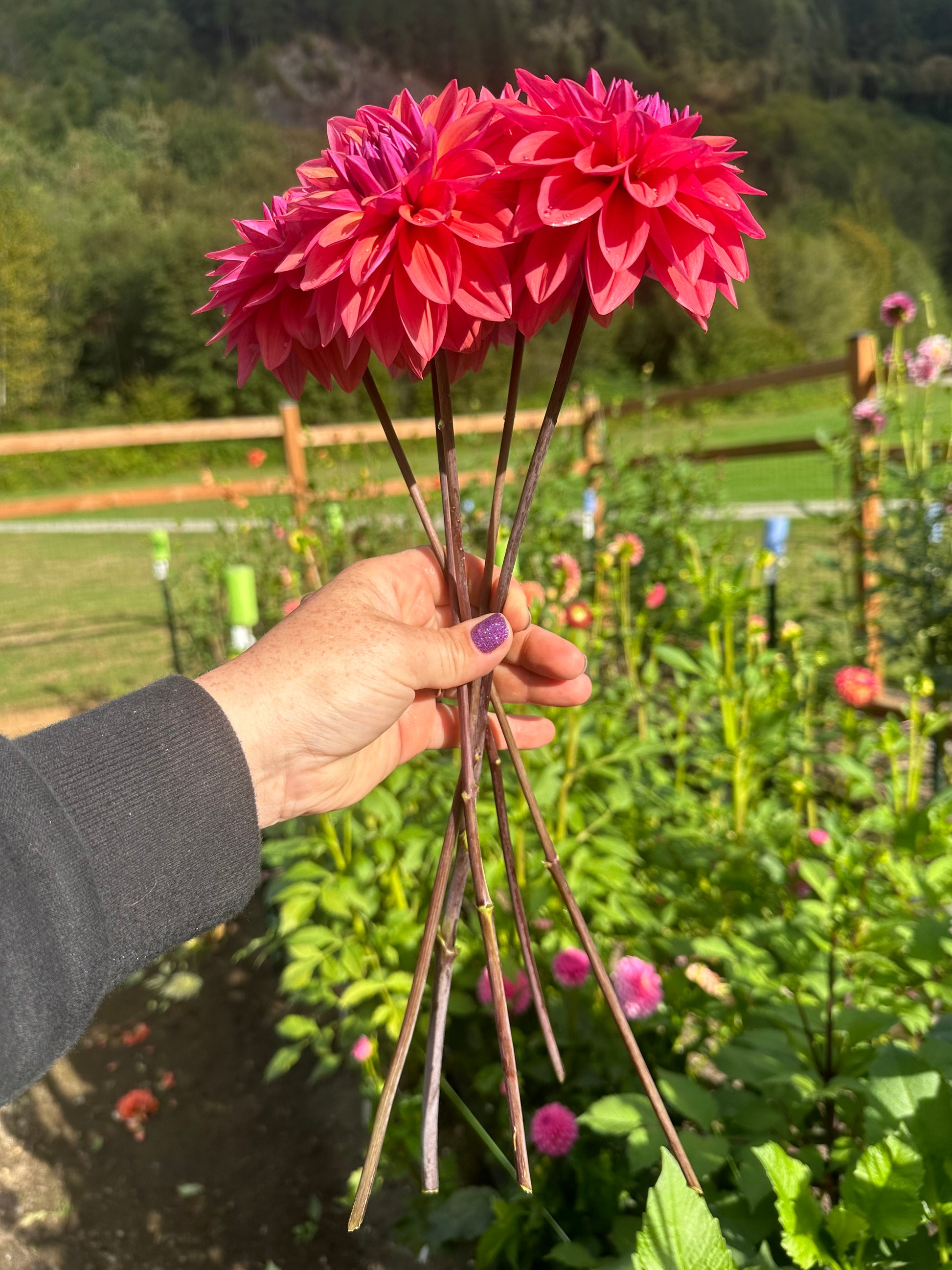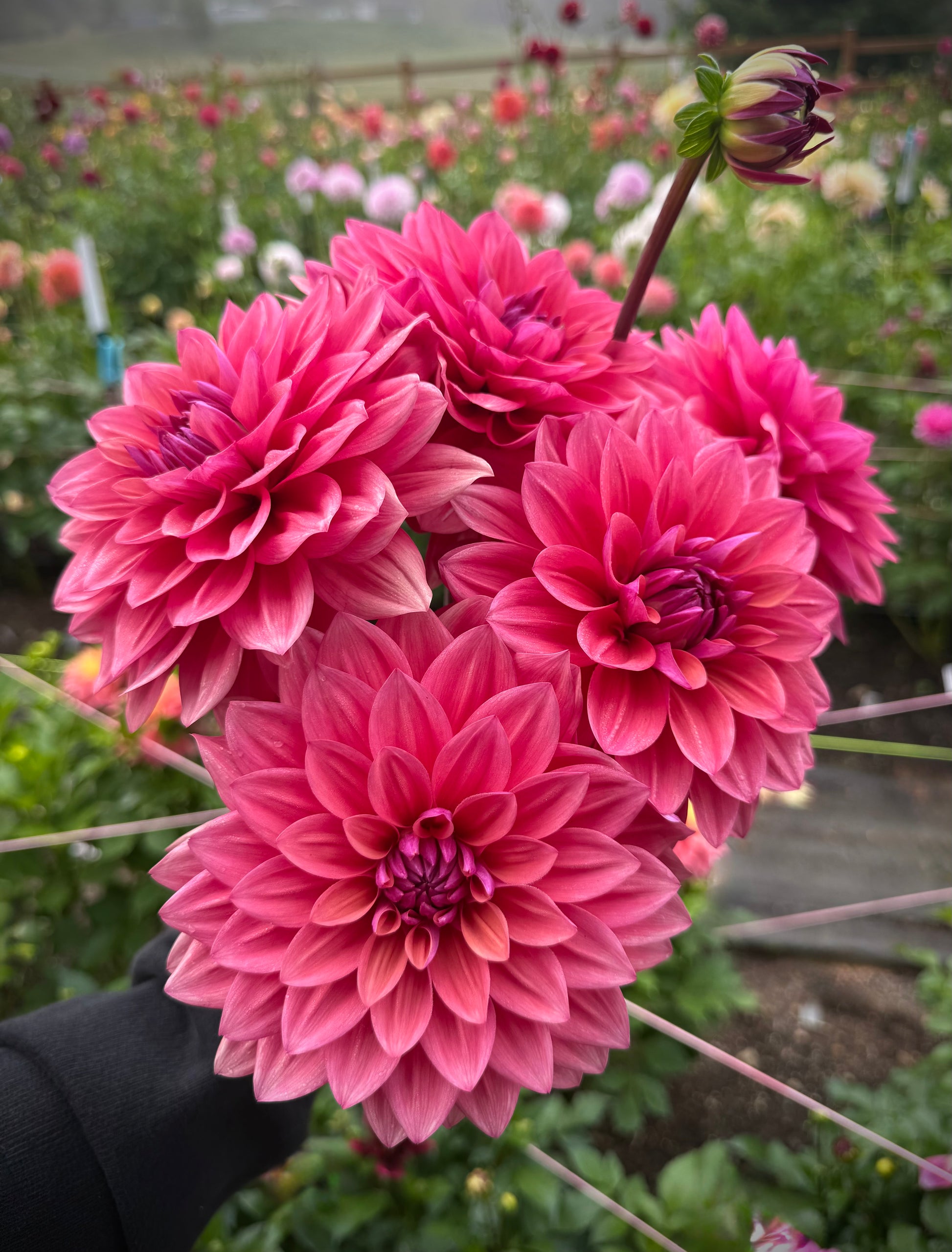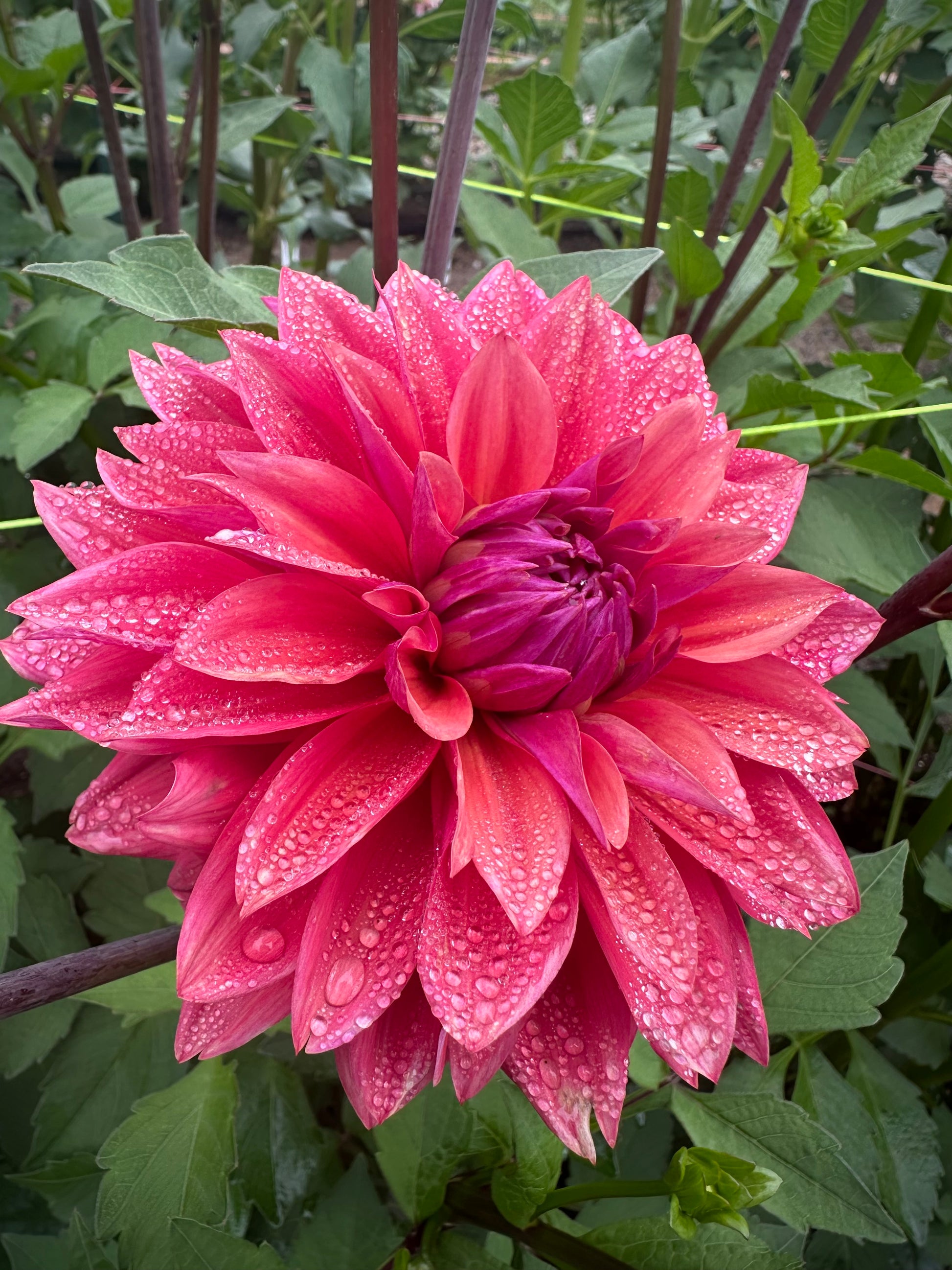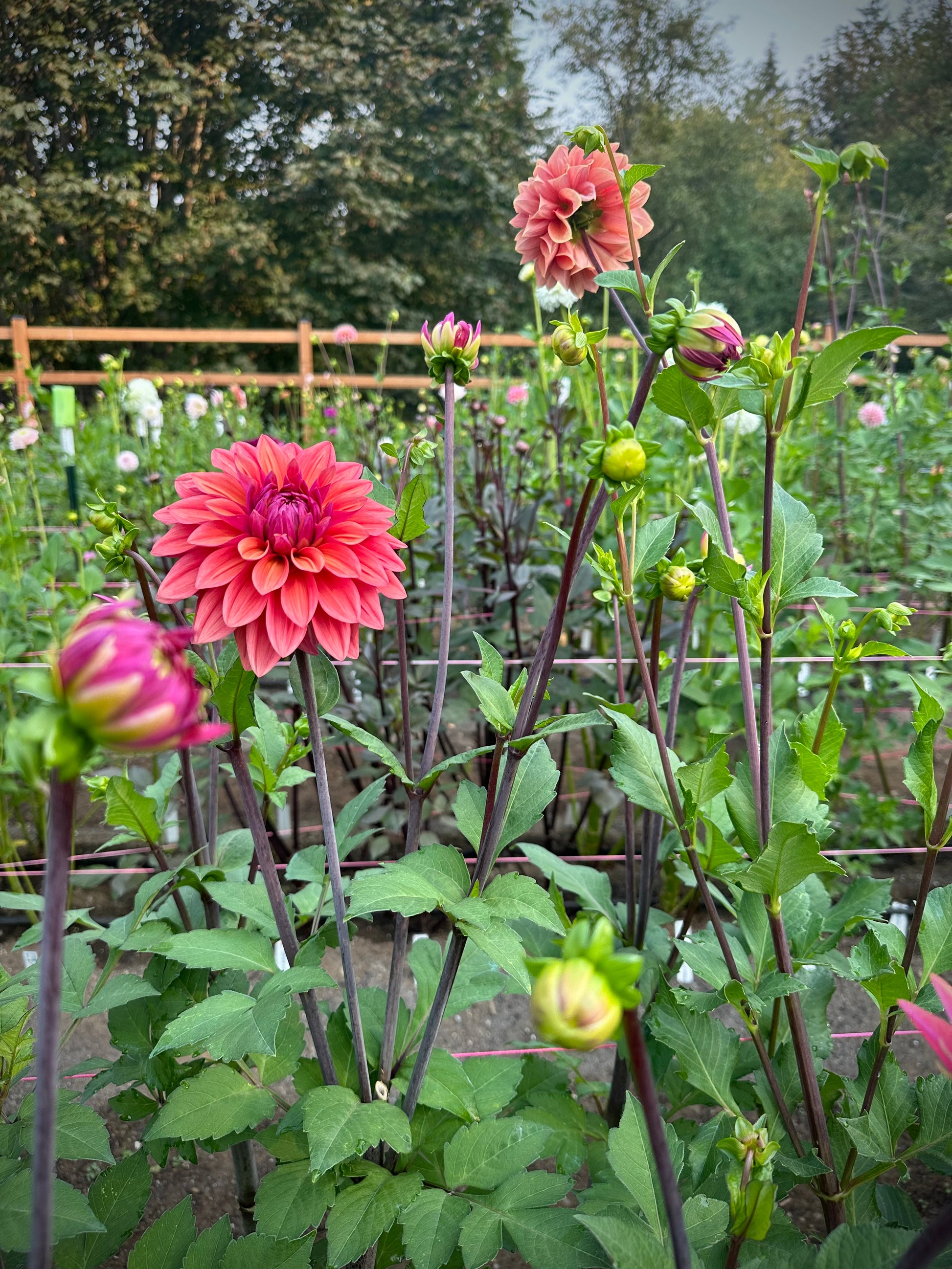 This one always stops people in their tracks when walking the garden. Raspberry, coral and plum colored 5 inch blooms with very strong, long stems and loaded in flowers all season. I will grow this variety every single year. Plant height 4’.