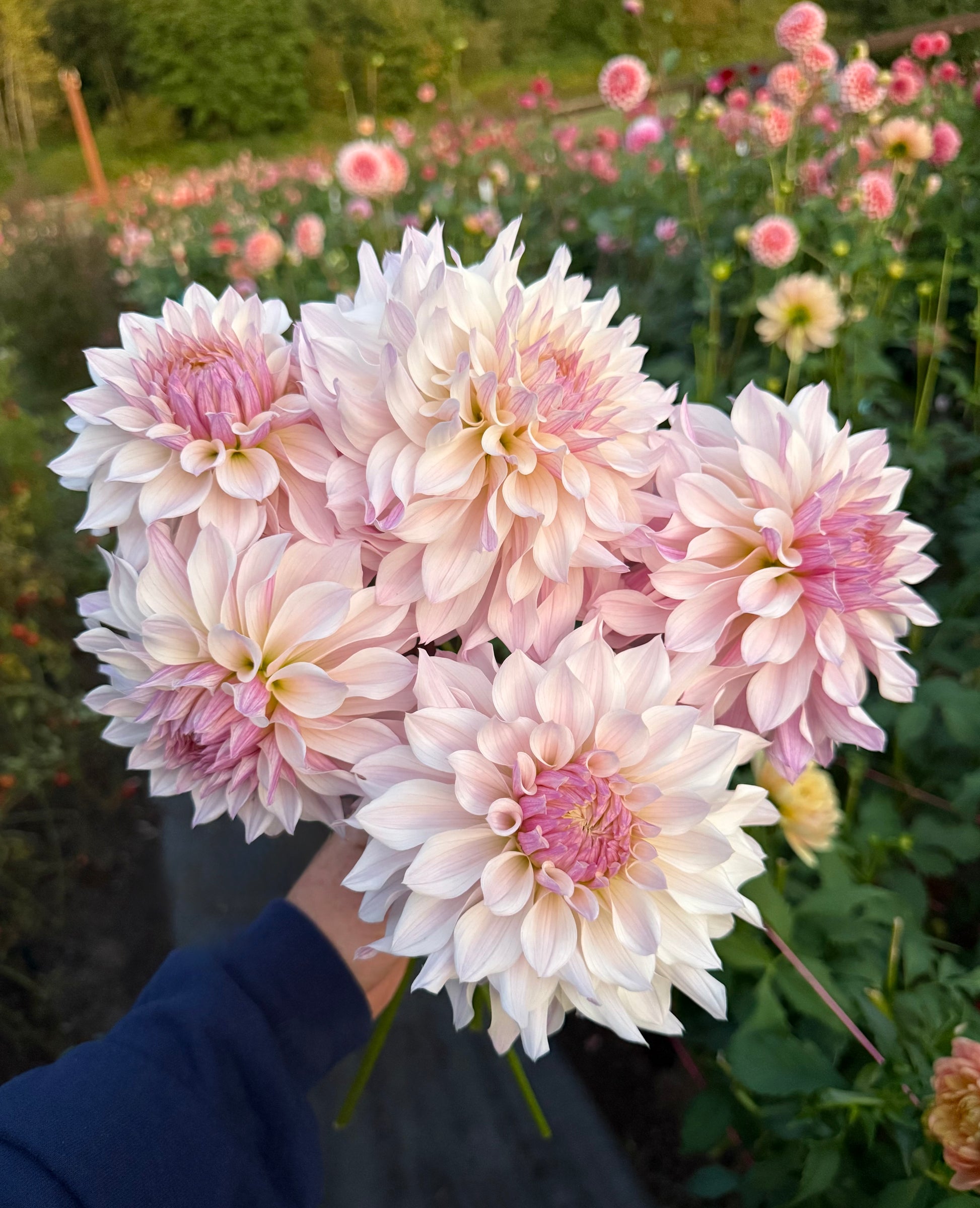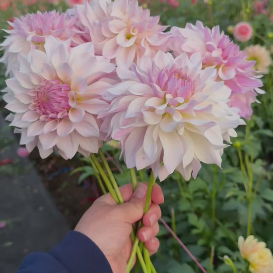 Bloomquist Compare is an absolute standout, known for its dreamy pastel tones and elegant form. The 5 inch blooms open in soft blush-pink with creamy undertones, shifting gently with the light throughout the day. Each flower is packed with layered, perfectly shaped petals that create a full, romantic look ideal for bouquets and wedding work.
