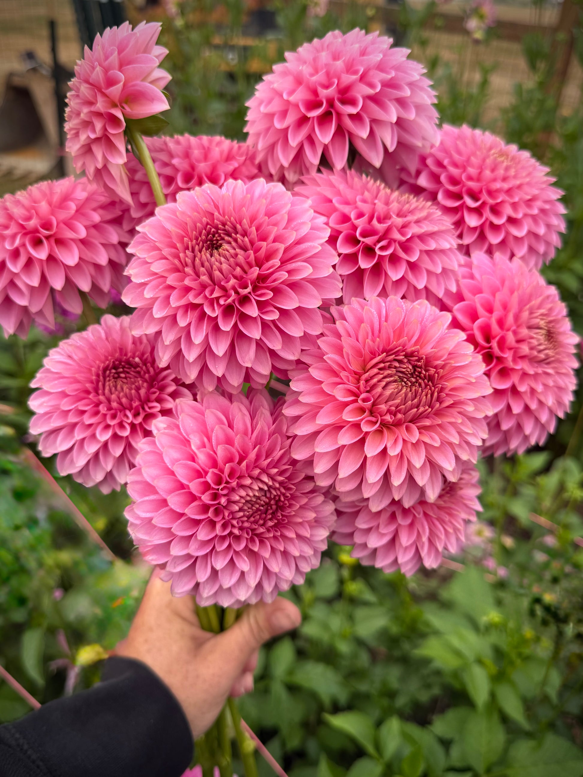 Another stunner from Paul Bloomquist in Washington state. These 3.5-4 inch light pink blooms have the faintest touches of blush pink at the tips. Long, light colored stems top 4 foot plants with continuous blooms all season long. Good bloom connection and vase life.