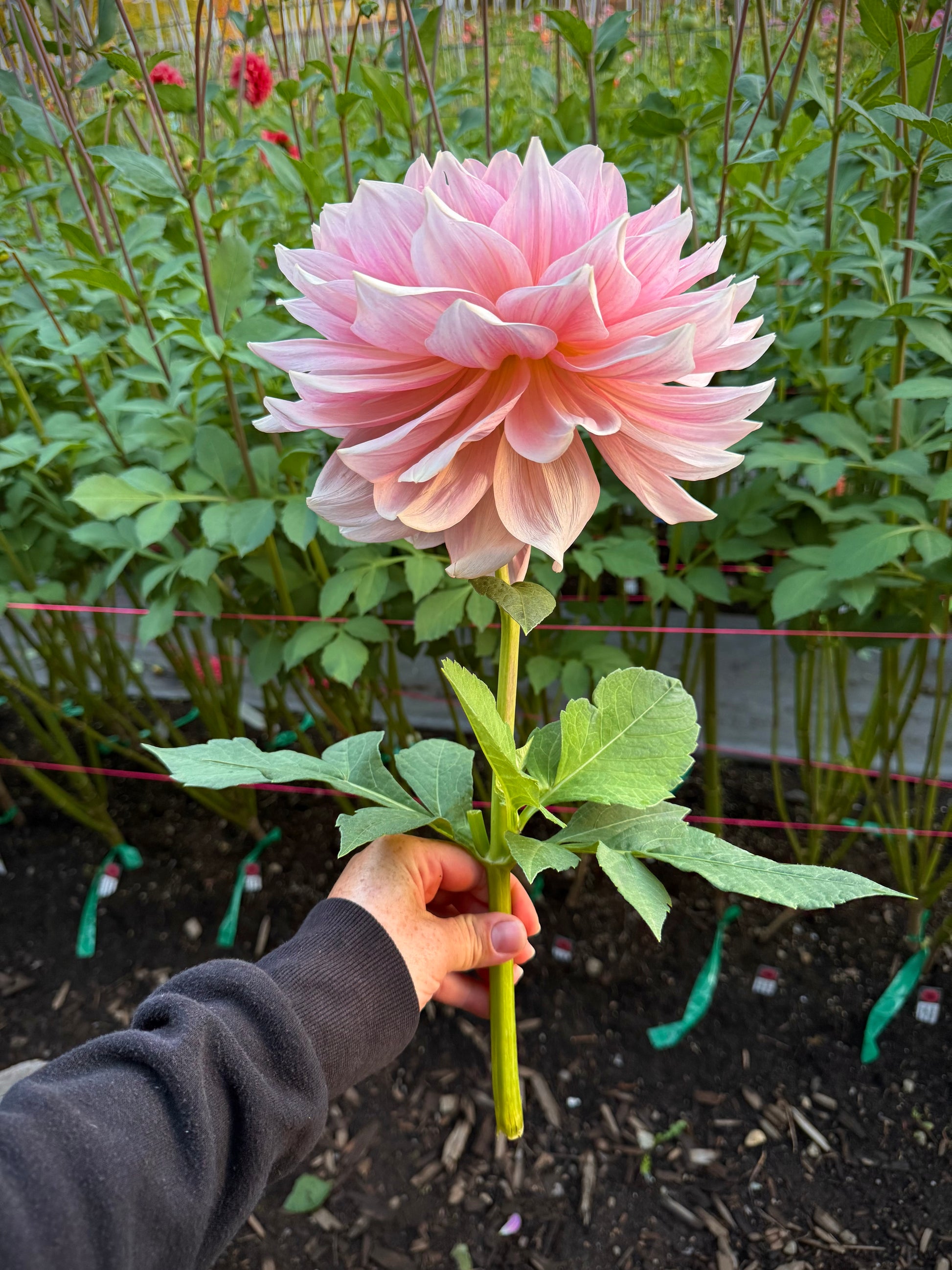 Fairway Pilot is a true showstopper. Beautiful 10 inch blooms with soft, romantic tones of blush pink and peach that glow. Each bloom reaches an impressive 10 inches with a plant height around 3.5 feet tall. Fairway Pilot’s pastel tones shift beautifully with the light, making it a favorite for weddings, arrangements, and anyone who loves a classic, feminine dahlia. Great for landscaping and sure to impress.
