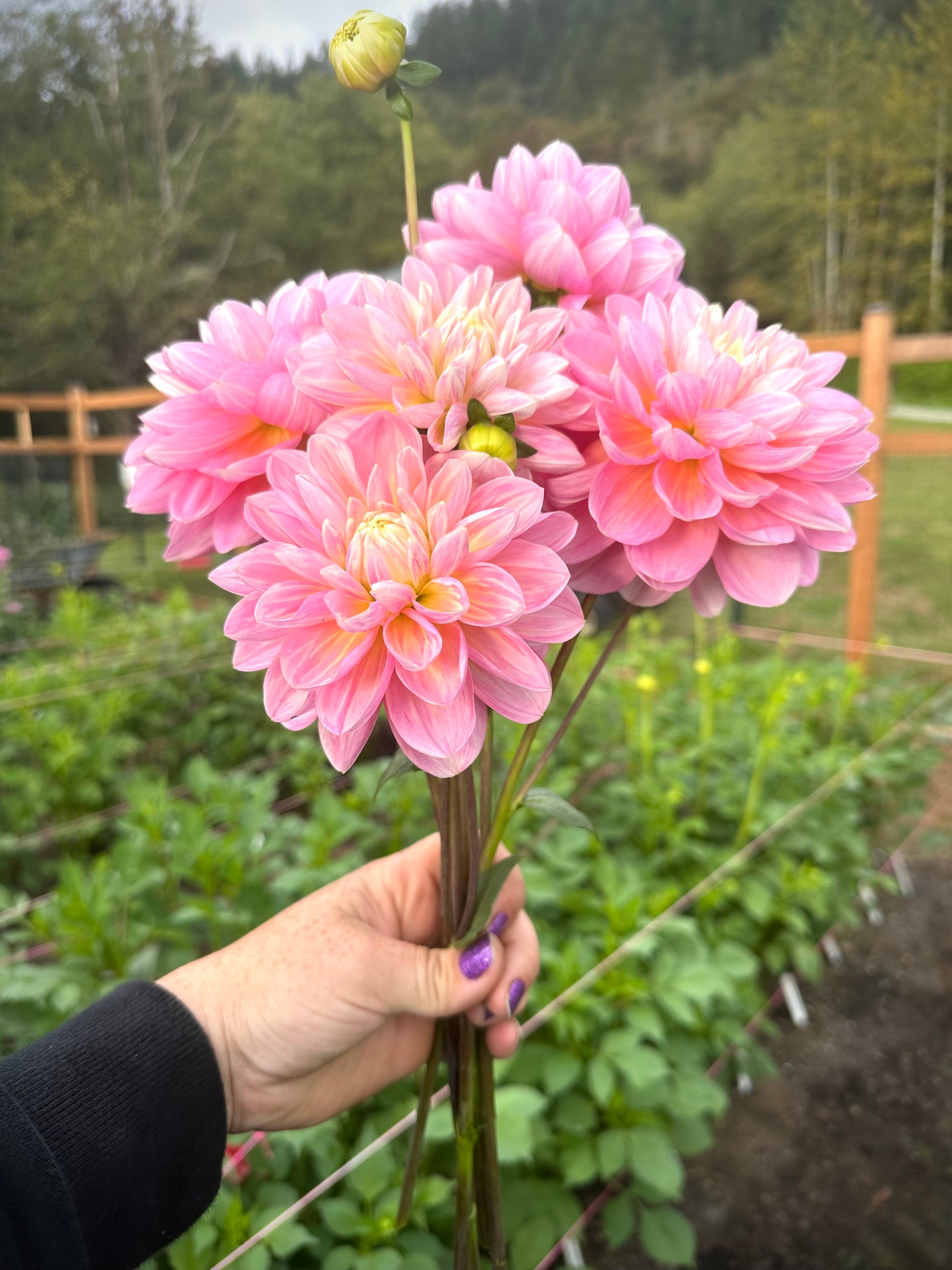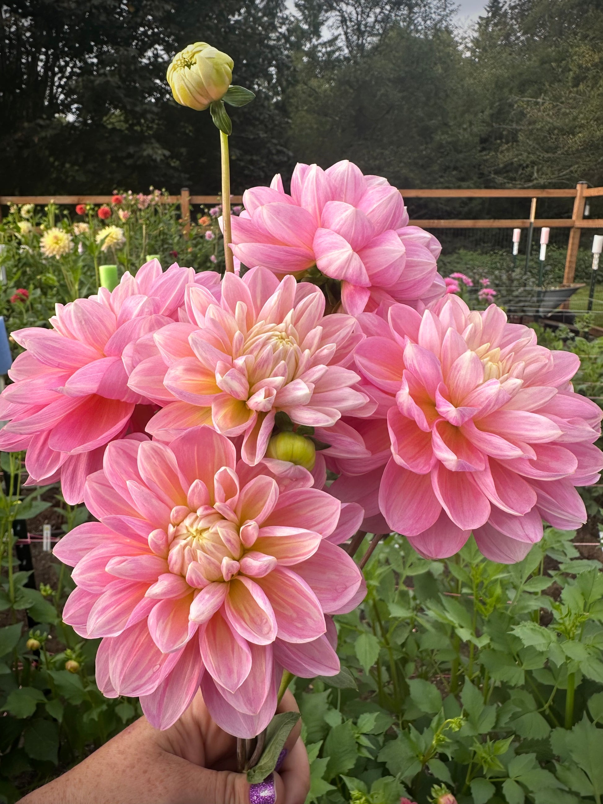 This gal is impressive. Tall plant with the most perfect 5 inch blooms that have an antique, elegant look to them. So perfect they look fake with long stems and long vase life! The perfect pale pink with pale creamy yellow detail. Zoom in to these pictures and check out the petals. They almost look like they were painted on, so unique and beautiful. Incredible tuber producer with one plant averaging 15 tubers per season. Plant height 5’.