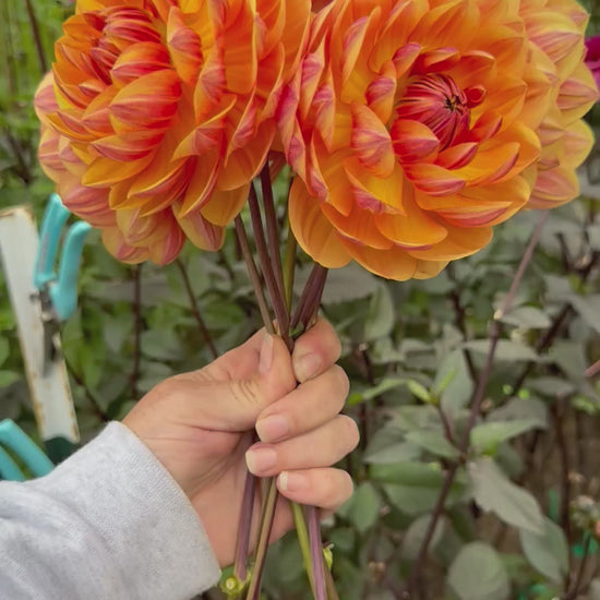 The one, the only, Hollyhill Golden Glow. It is really everything it’s cracked up to be. The perfect waterlily form with the most exquisite petal detail in an array of rich, golden rosy guava, vibrant oranges and warm tangerine. It ranges from 4-6 inches depending on if you disbud; has the longest, strongest stems, bloom connection and angle. Taller plant coming in around 6’. Stunning in every sense. A hard one to acquire, but WELL worth the effort. Introduced in 2025 by Ted & Margaret Kennedy.