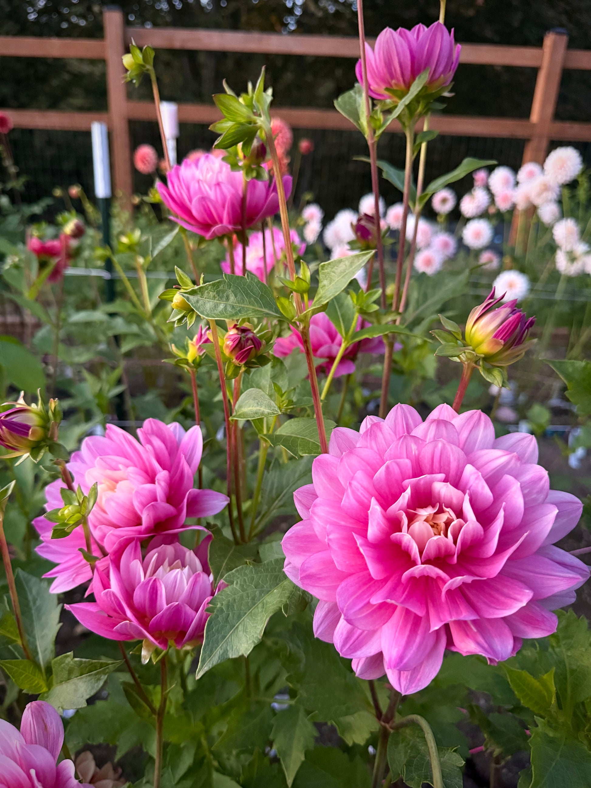 Beautiful waterlily. Tons of 4.5 inch blooms. White centers fading out to a bright pink early in the season then transition to full pink. Upright blooms with the sturdiest stems. Great tuber producer from both cuttings and tubers. Plant height 4’. Hybridized by Ted and Margaret Kennedy.