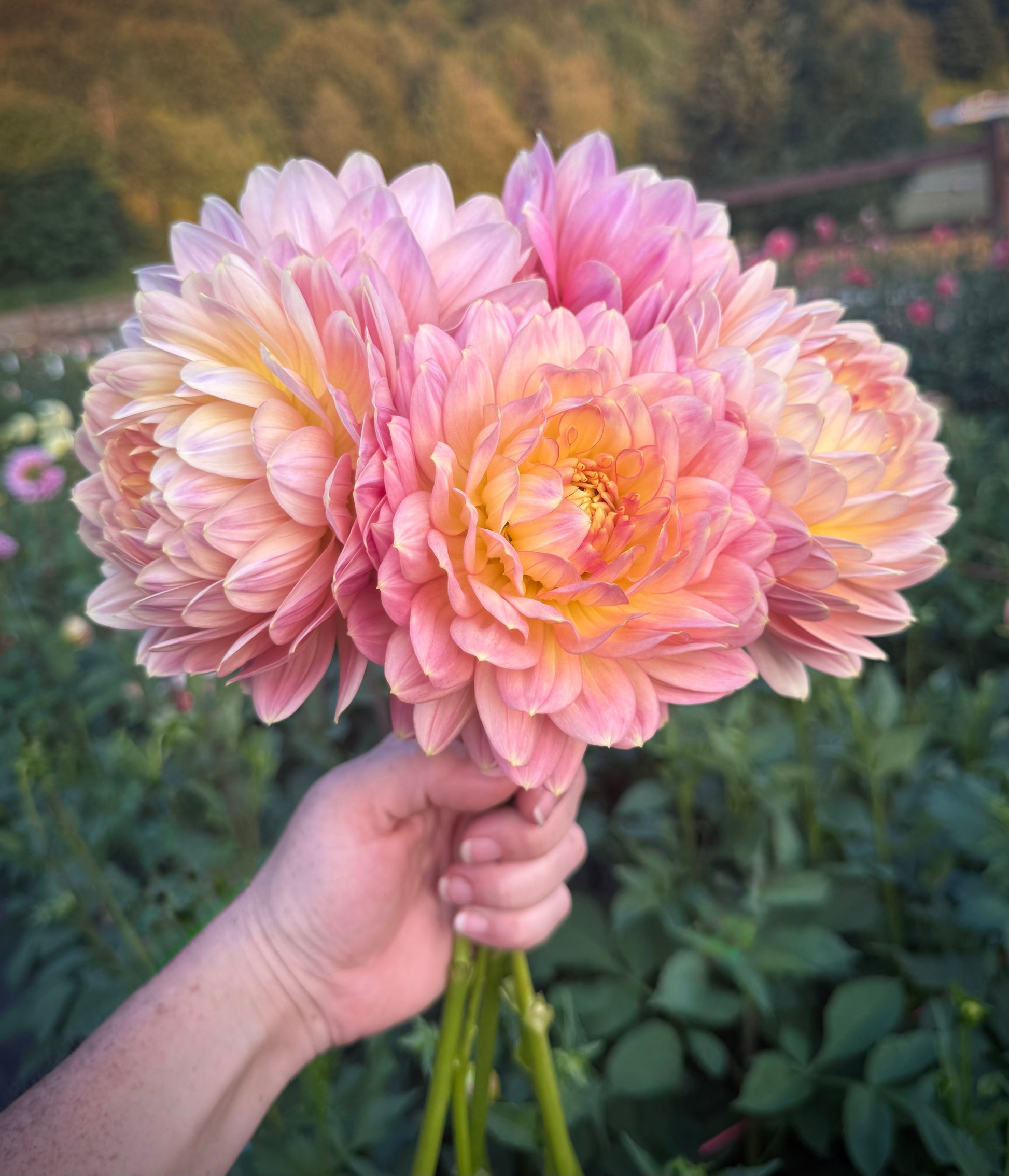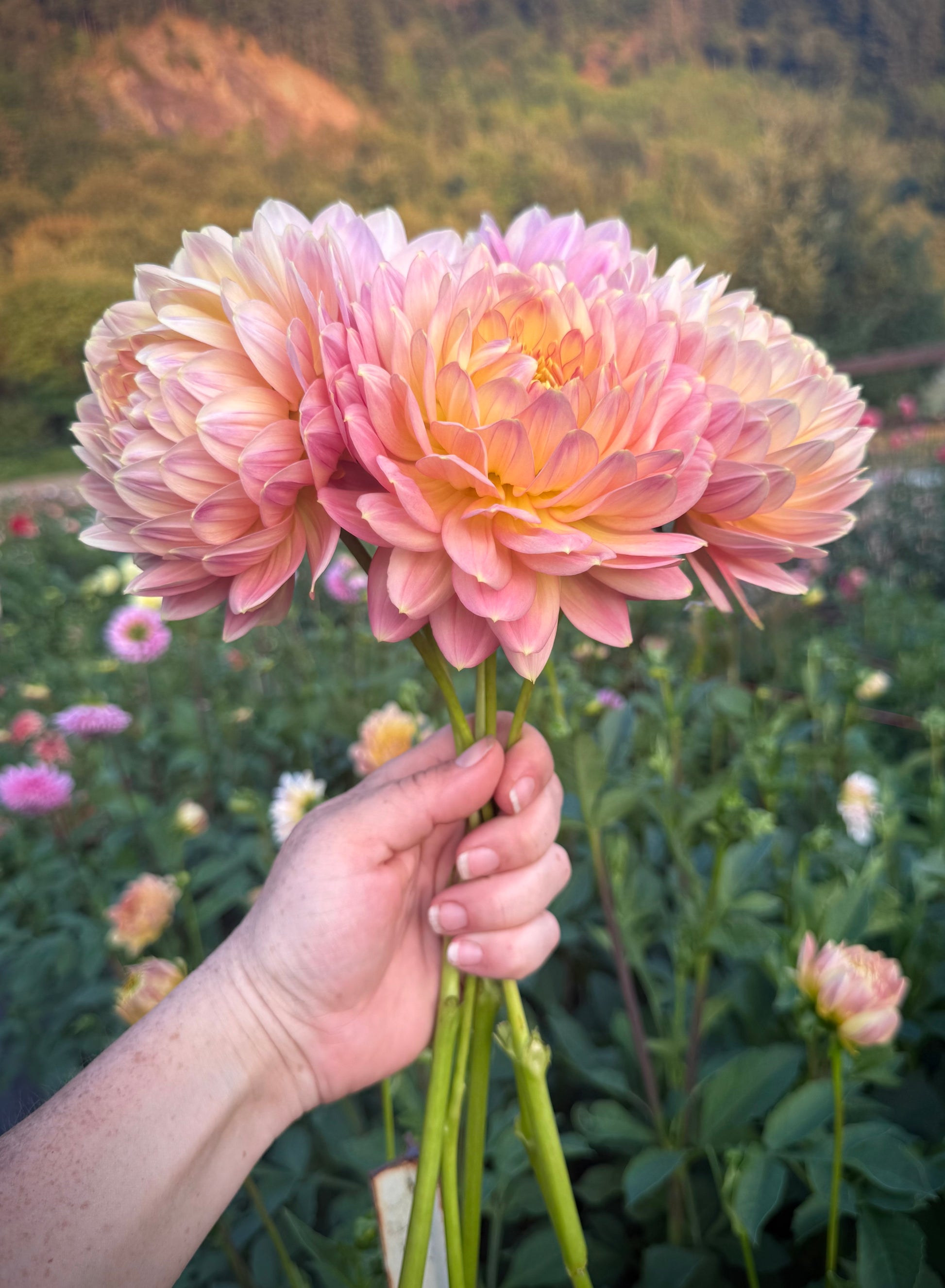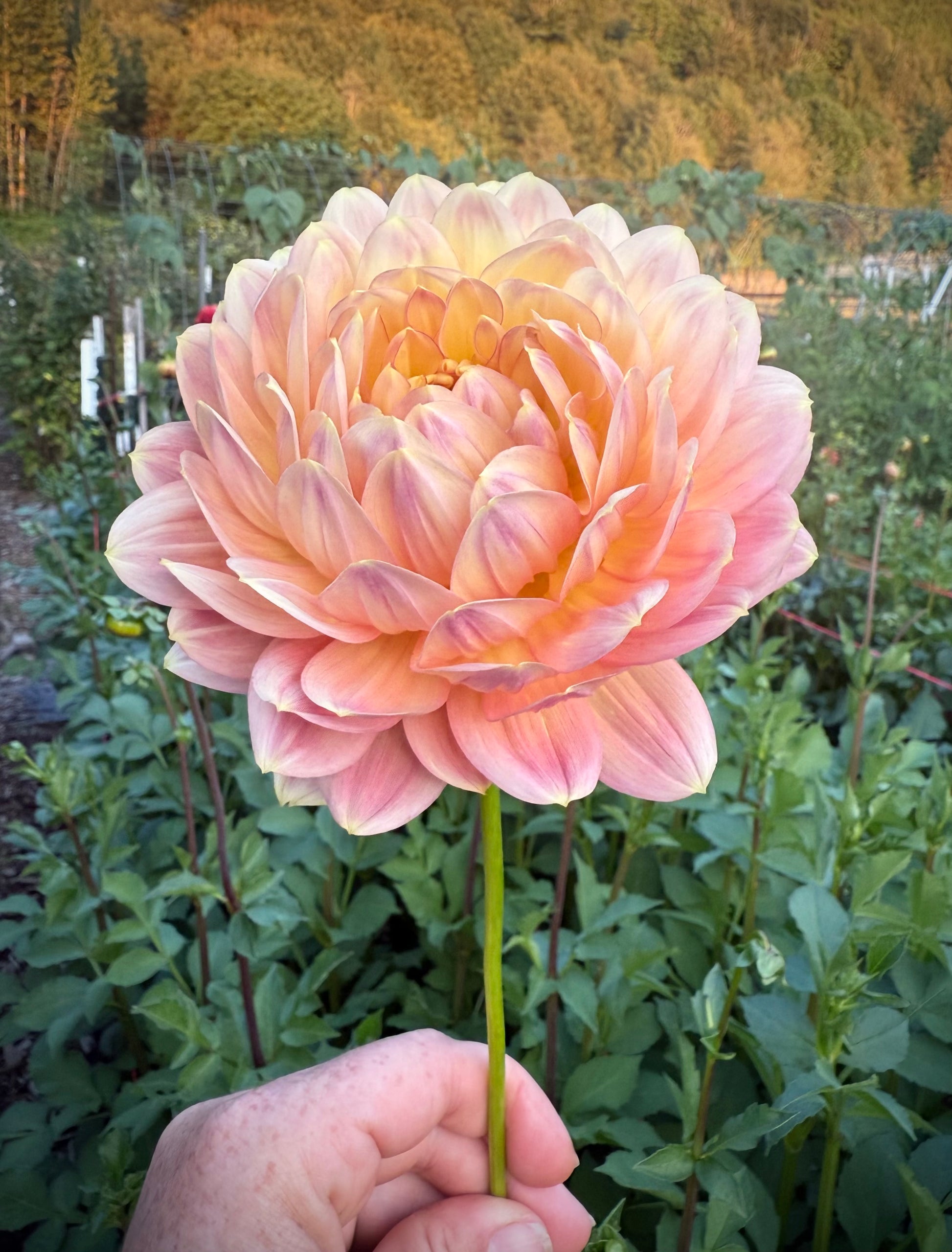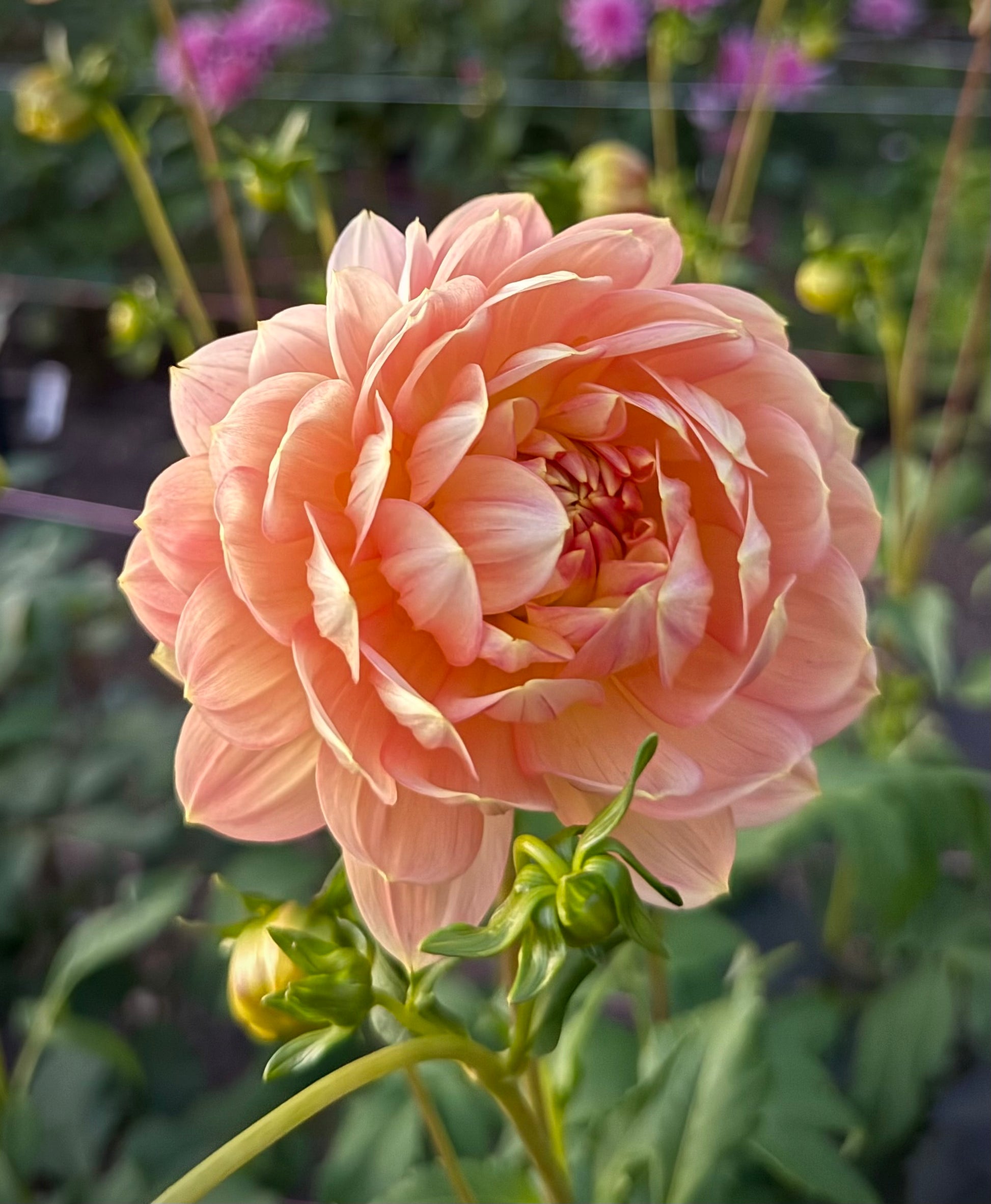 Beautiful 6 inch peachy waterlily blooms on a 4’ plant. Hollyhill Serenity pumps out the blooms with a surprisingly long bloom life. As you can see from the photos, color shifts throughout the season from creamy blush to a soft sunset orange or anywhere in between. Cut deep and disbud for stronger stems. Hybridized by Margaret & Ted Kennedy in 2016.