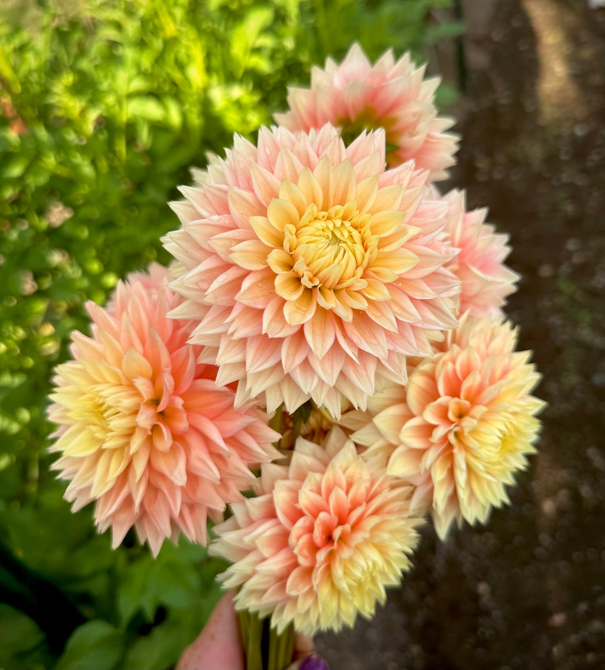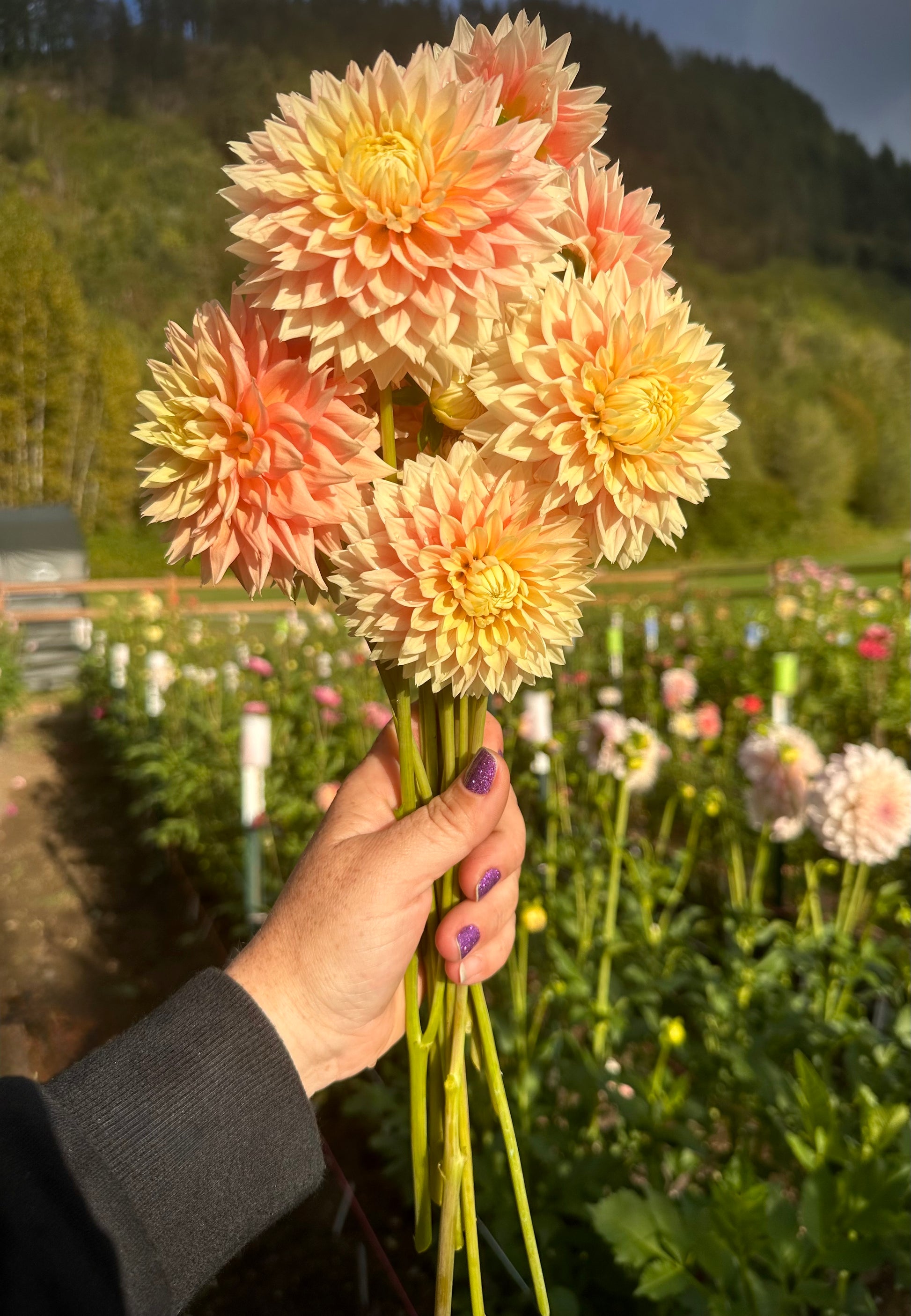 Beautiful 3-4 inch peachy apricot blooms with pointed petals and long stems. Compact plant height. Cut deep to encourage long stem growth and disbud for larger blooms. Plant height 3’. Hybridized by Lee Hemmings Carlton of Goldenrod Gardens and released in 2023.