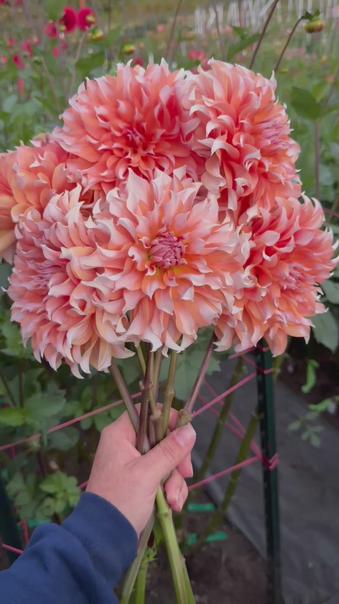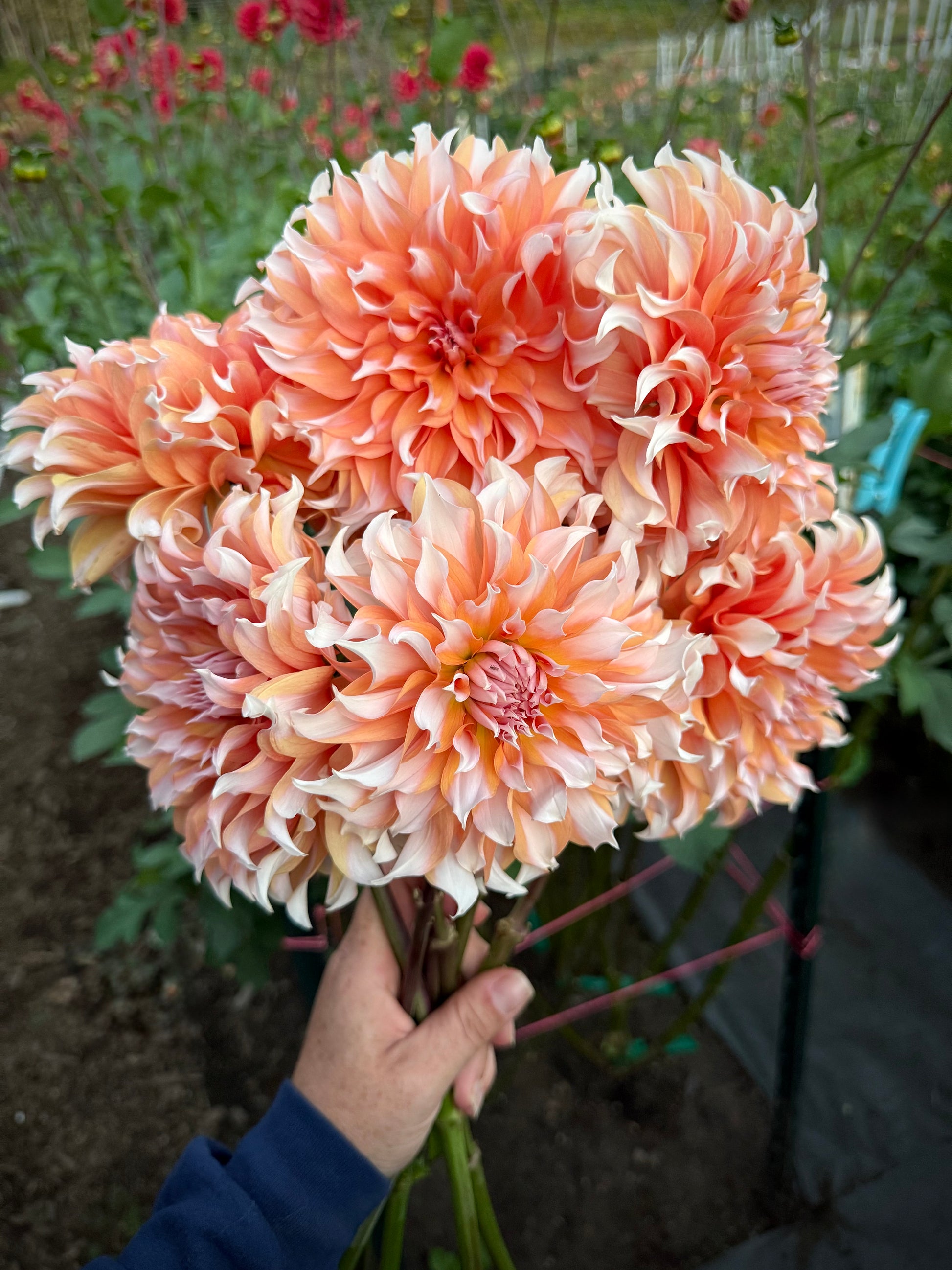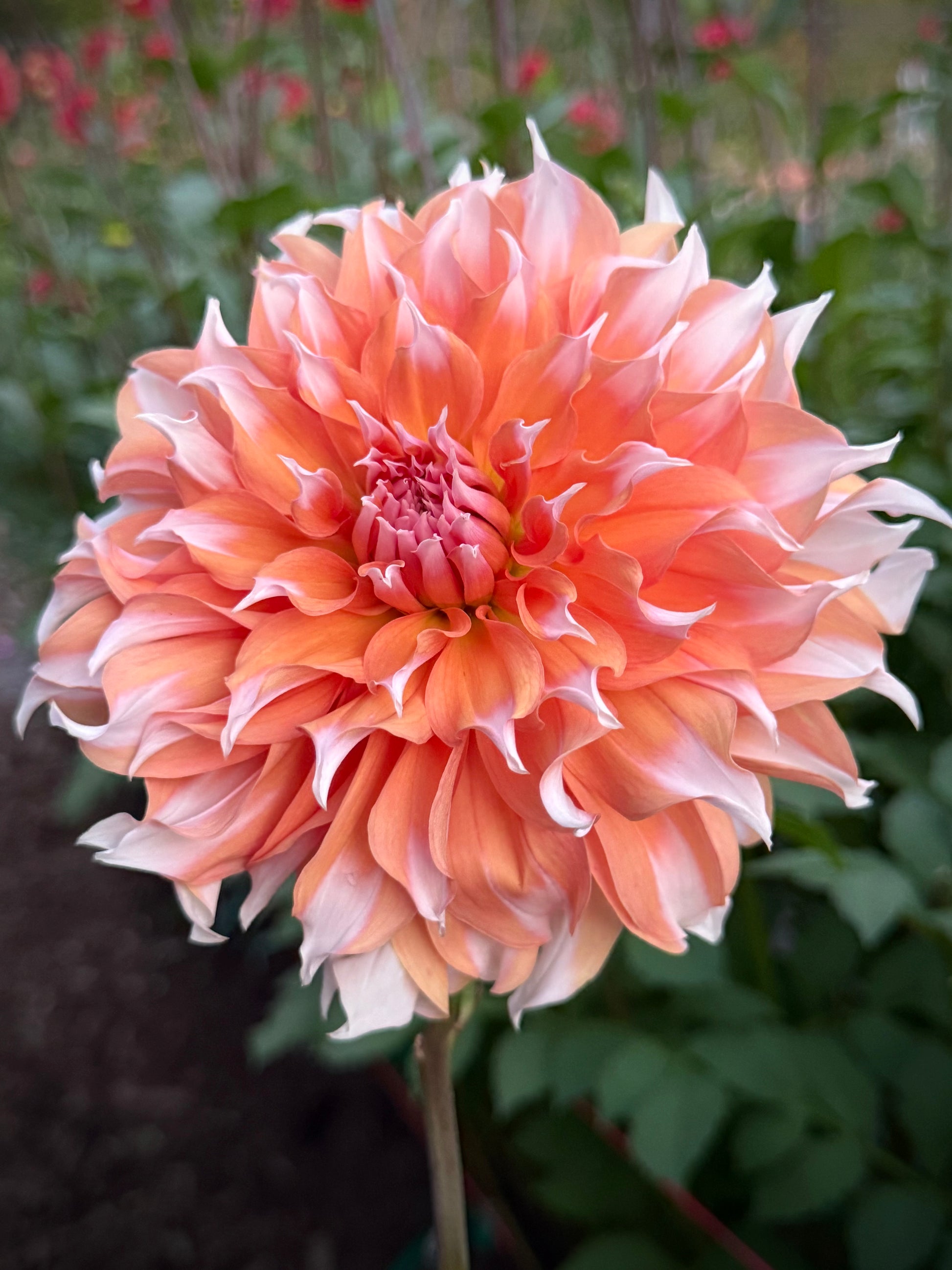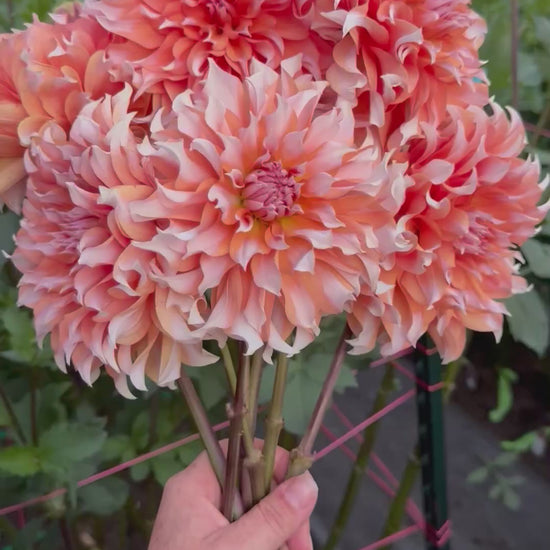 Arabesque is a 4-5 inch bi-color bloom with wispy petals and extremely strong stems and bloom connection. Every single petal is different, with a mix of peach and cream. Angle is impossible to pin down. Some blooms are clock faced and others point straight to the sky; most land somewhere in the middle between straight forward and 45°. Plant height 3’. Hybridized by Lee Hemings Carlton of Goldenrod Gardens and released in 2023.