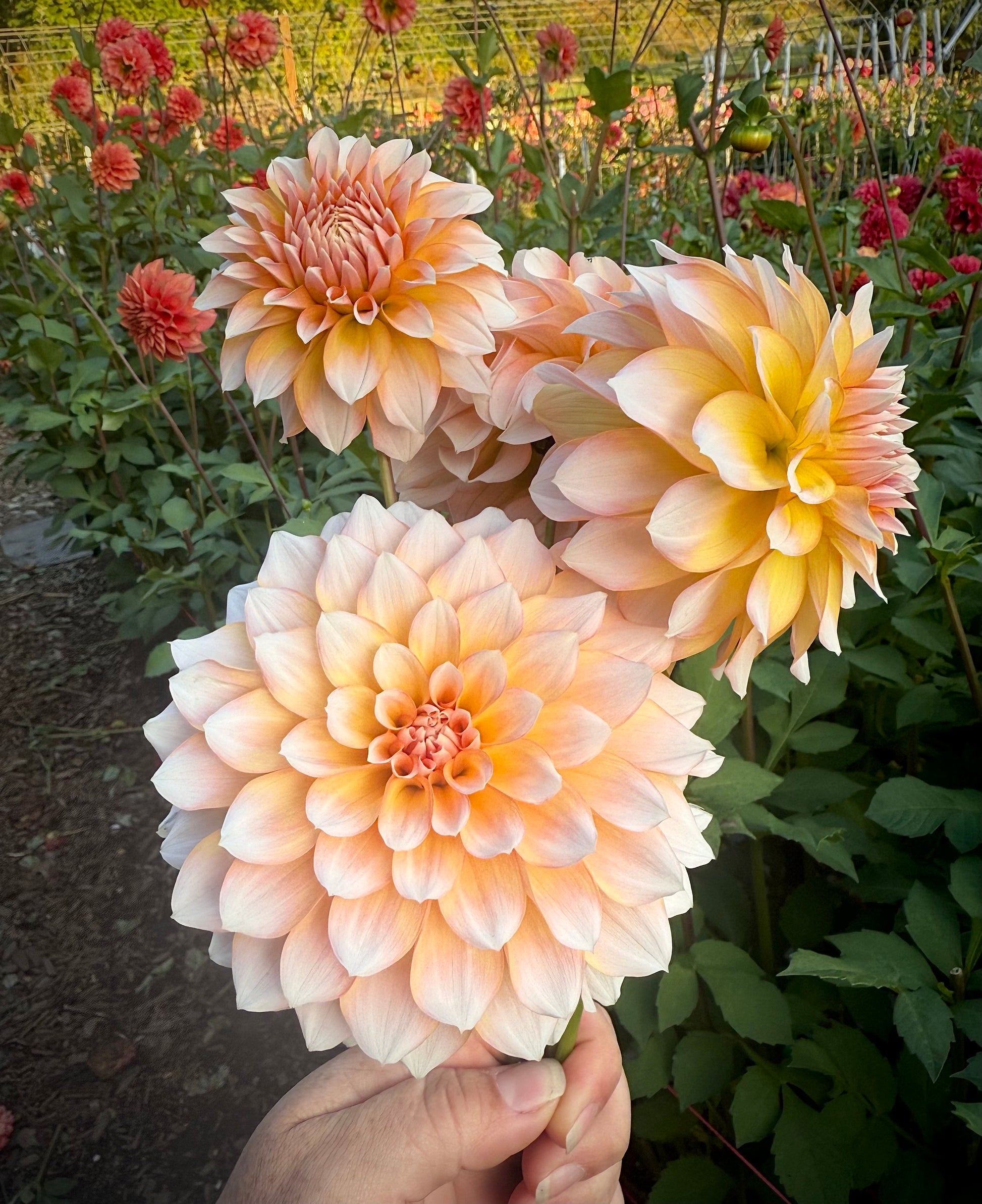 Chloe is a beautiful, creamy bicolor bloom coming in around 4 inches across. Chloe has a few different looks, some showing more apricot and others showing more blush tones. Disbud for stronger stems. Plant height 3.5’. Hybridized by Lee Hemmings Carlton of Goldenrod Gardens in 2023.