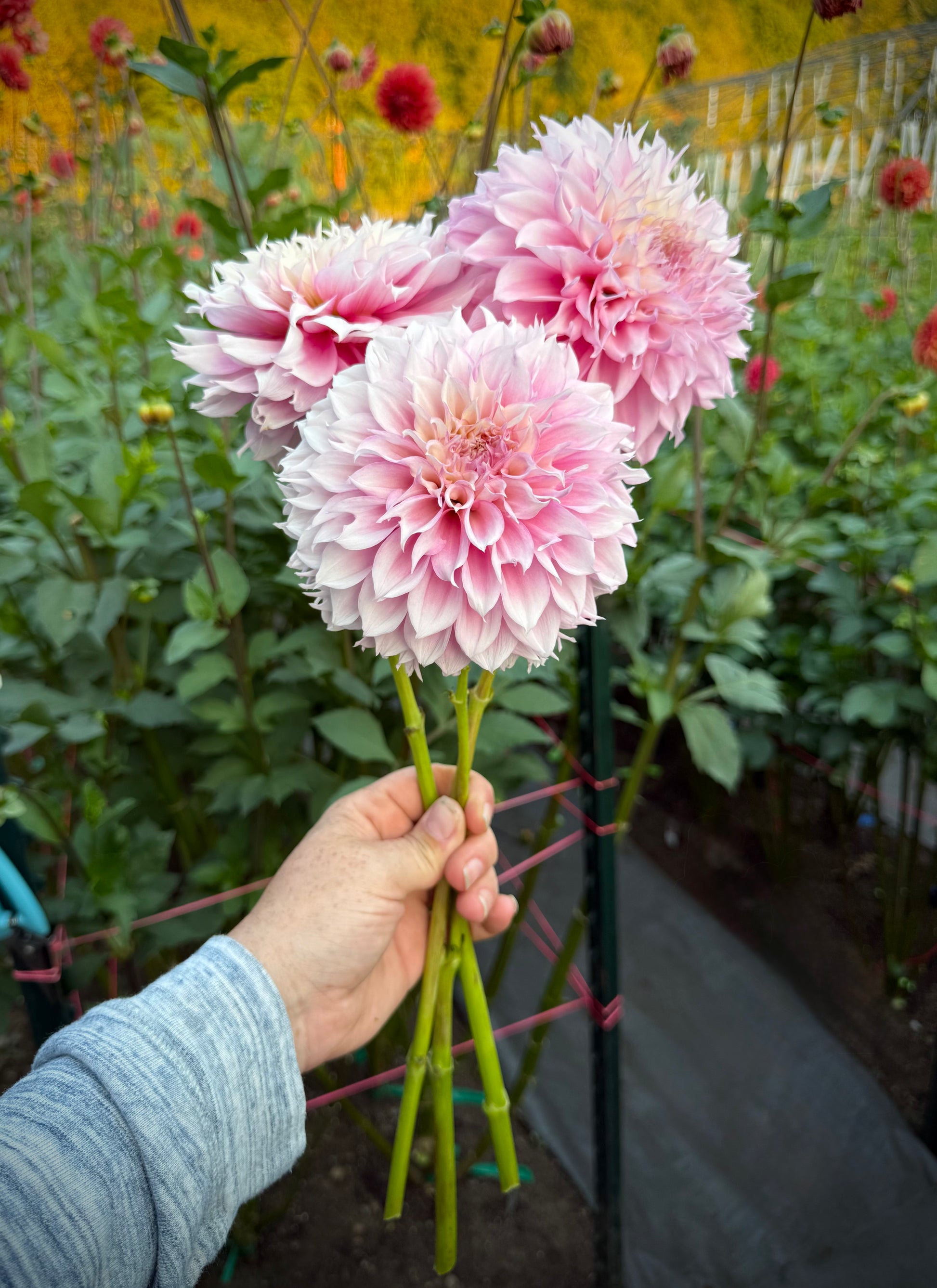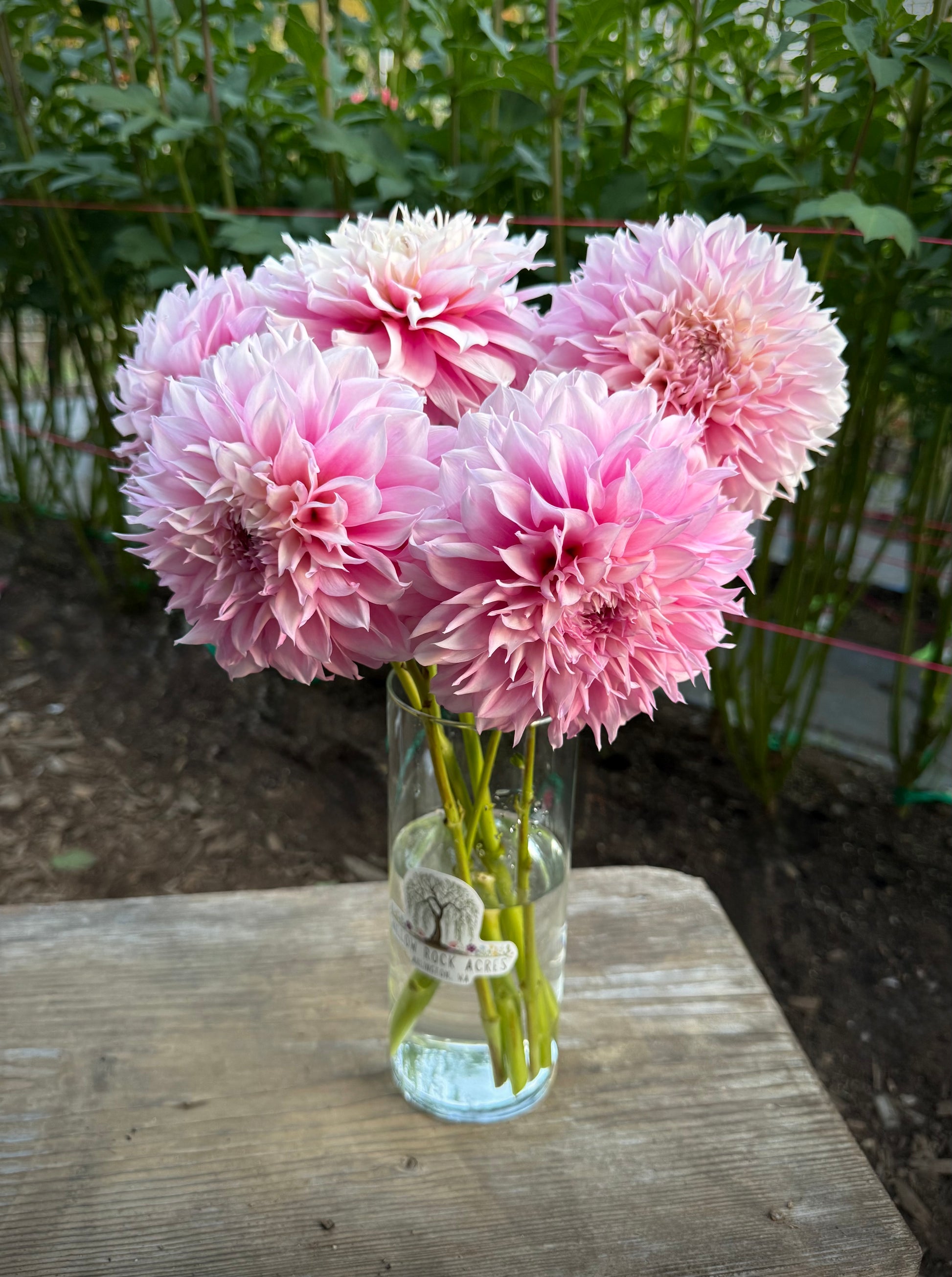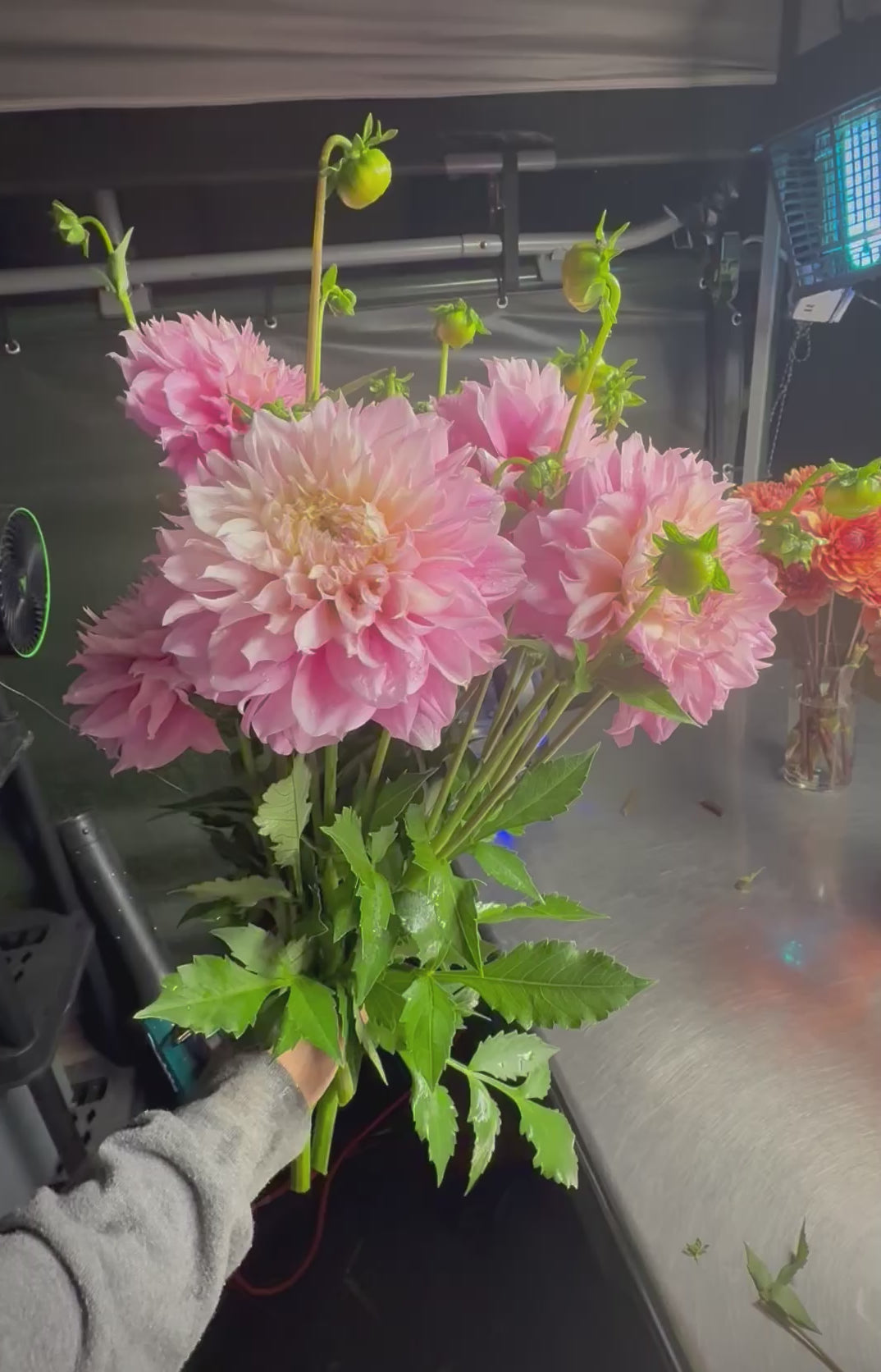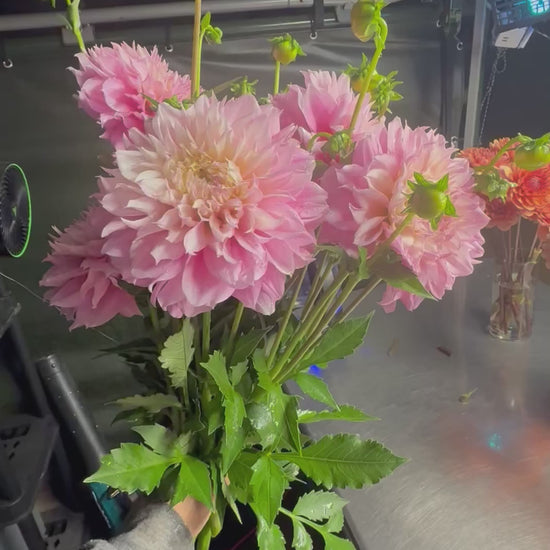 Coquette is a winner! One of the most floriferous plants I grew this season. The gorgeous 5 inch blooms are constant. Perfect bloom angle as you can see from the pictures and videos. The sturdiest stems with fluffy, soft pastel blend of pink, and creamy opal tones. The petals are broad, slightly recurved, and densely layered with some petals lacinated and other perfectly rounded creating the most unique blooms. The color shifts slightly throughout the season creating a delicate ombré effect, but the cool part is the ombré shifts from a light center and darker petals, to a darker center reaching lighter petal tips. Overall, it has a romantic, luminous appearance that is breathtaking. Plant height 3.5’. Hybridized by Lee Hemings Carlton of Goldenrod Gardens and released in 2024.