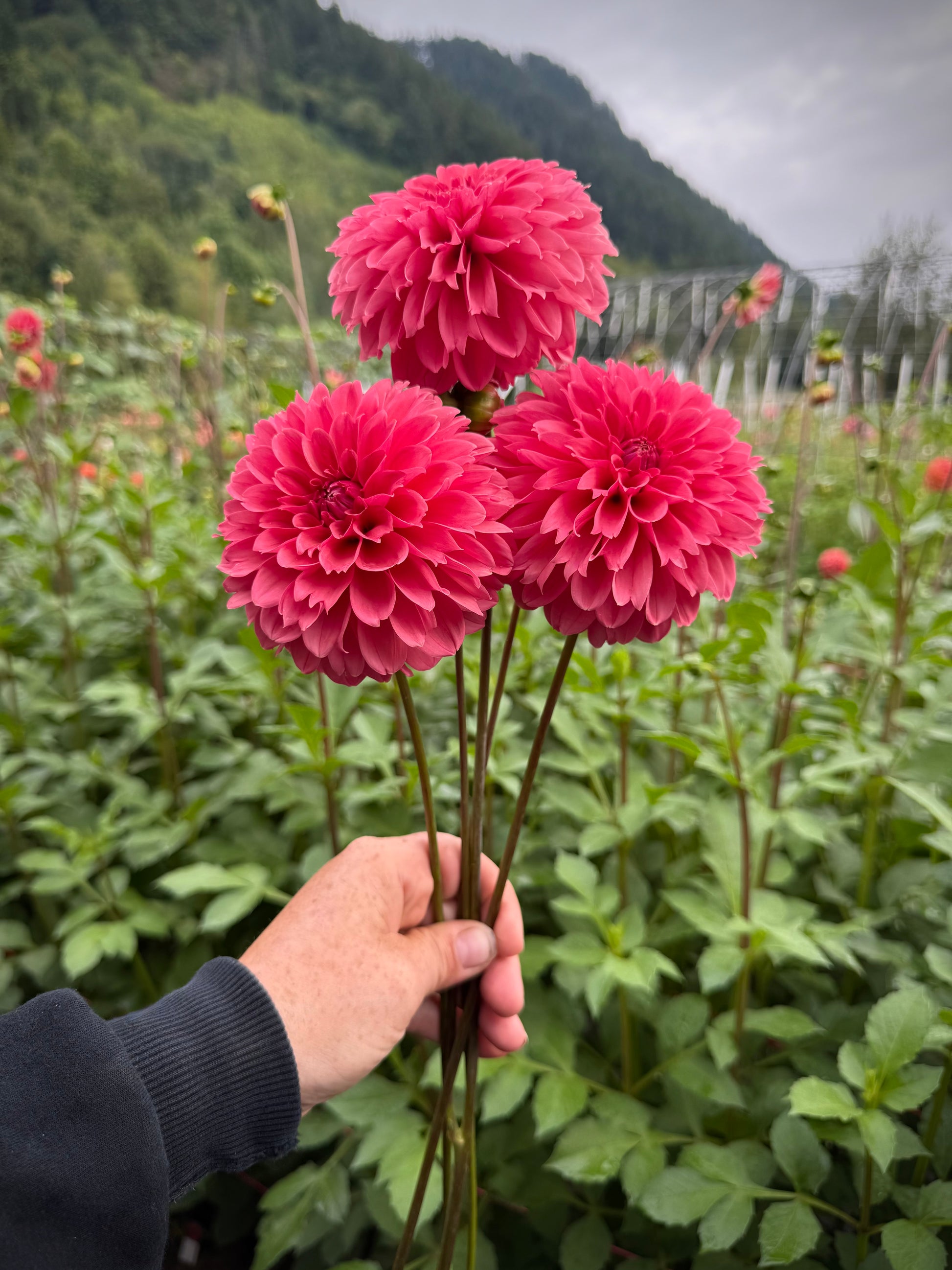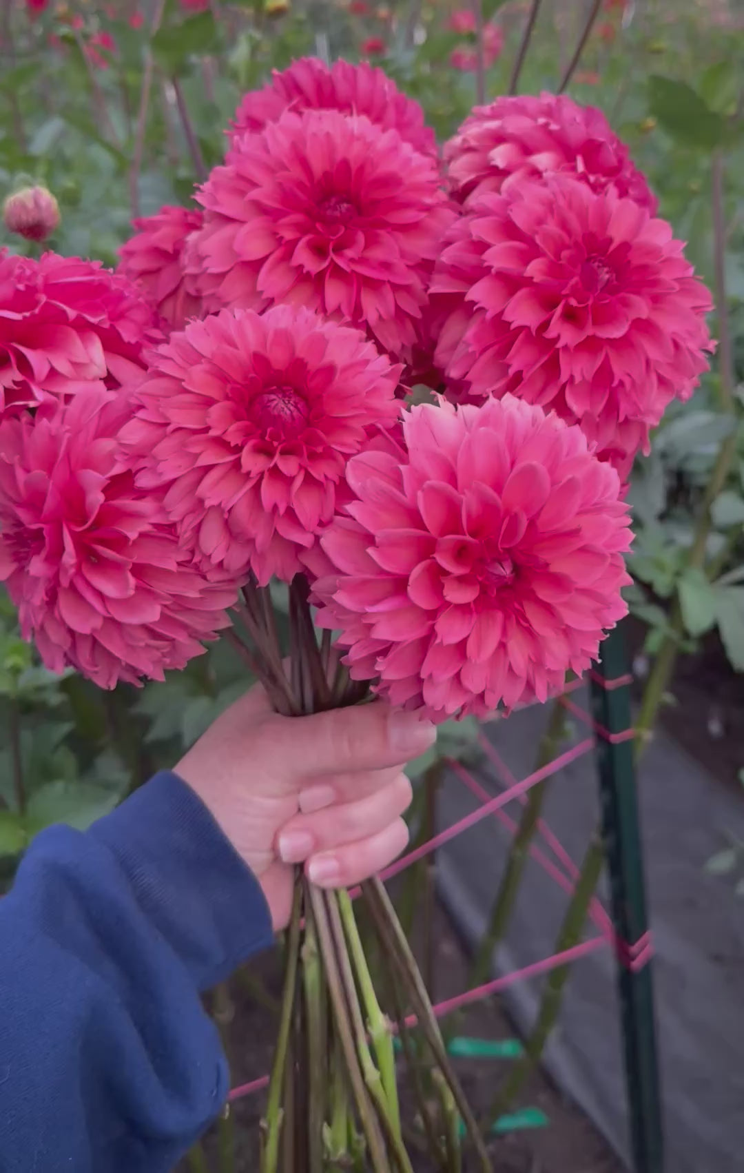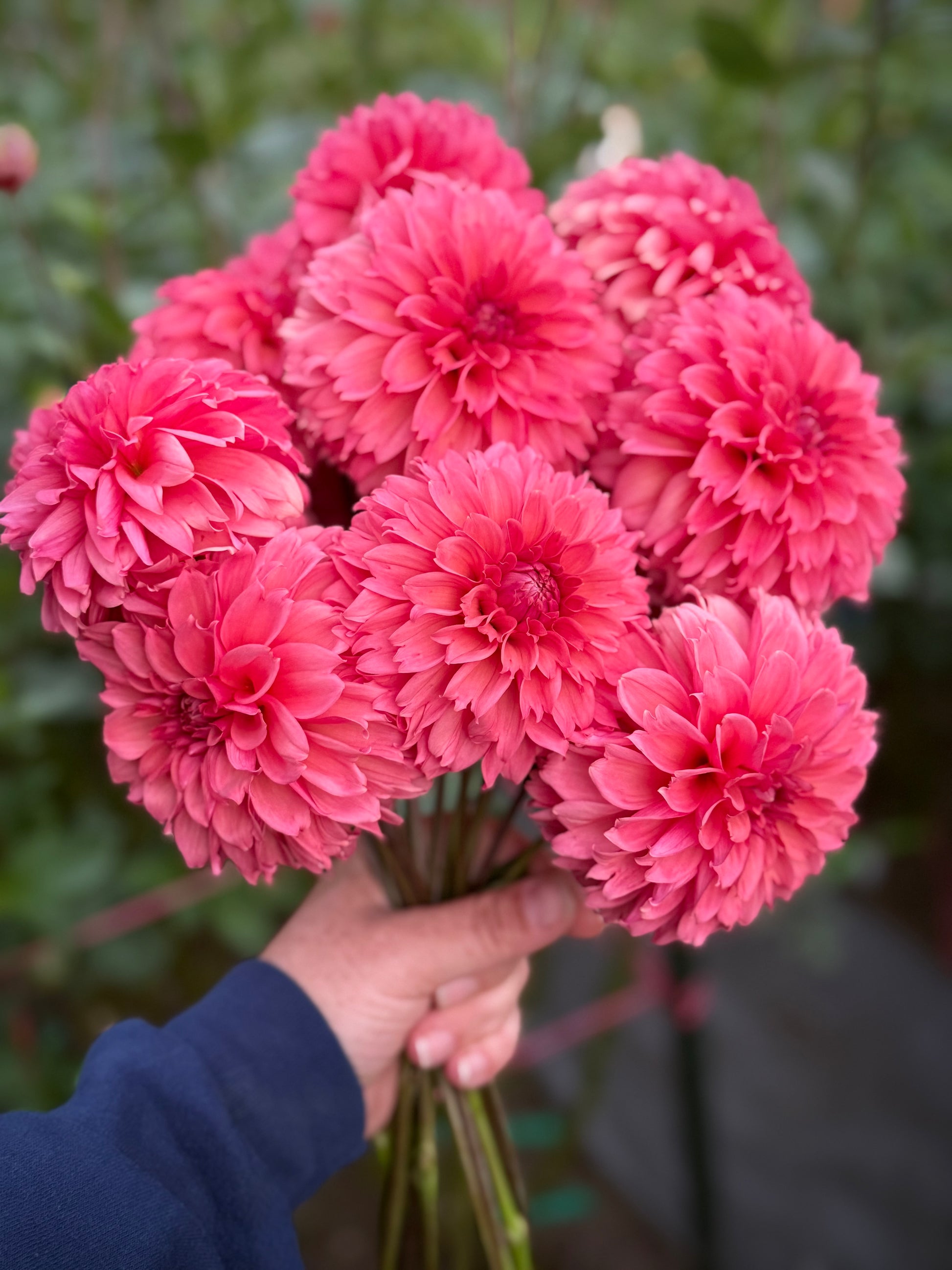 You're going to fall in love with Lee’s Ellis! Coming in hot with perfect 3 inch blooms, these salmon and coral beauties have such amazing split petals, reminiscent of hundreds of little tulips. Long, dark, strong stems with great bloom connection and angle, ideal for adding a pop of color and depth to arrangements. Hybridized and introduced in 2022 by Lee Hemings Carlton of Goldenrod Gardens. Plant height 5'.