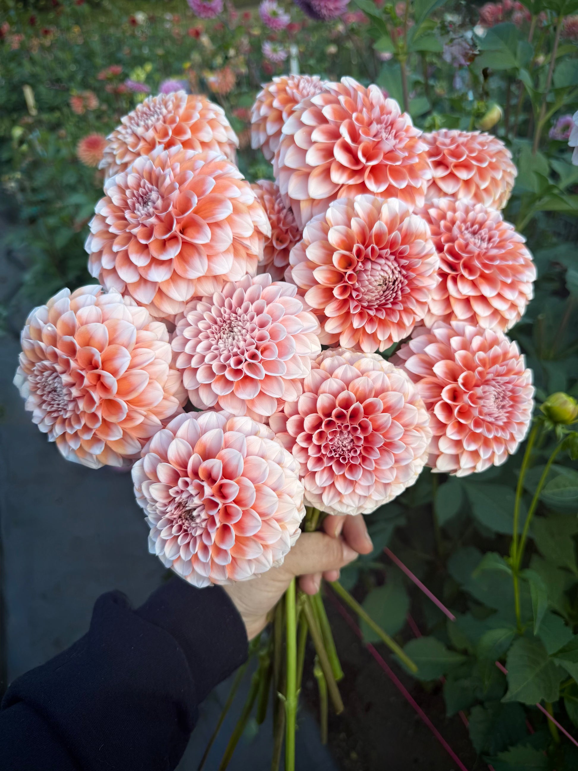 Lee’s Hopscotch is a cut flower queen. Gorgeous bicolor 3 inch ball blooms with the strongest stems and perfect 45° angle. Excellent vase life and sure to draw your eye when walking by. Very prolific with constant beauty all season long. Plant height 4.5’. Hybridized by Lee Hemmings Carlton of Goldenrod Gardens and released in 2023.