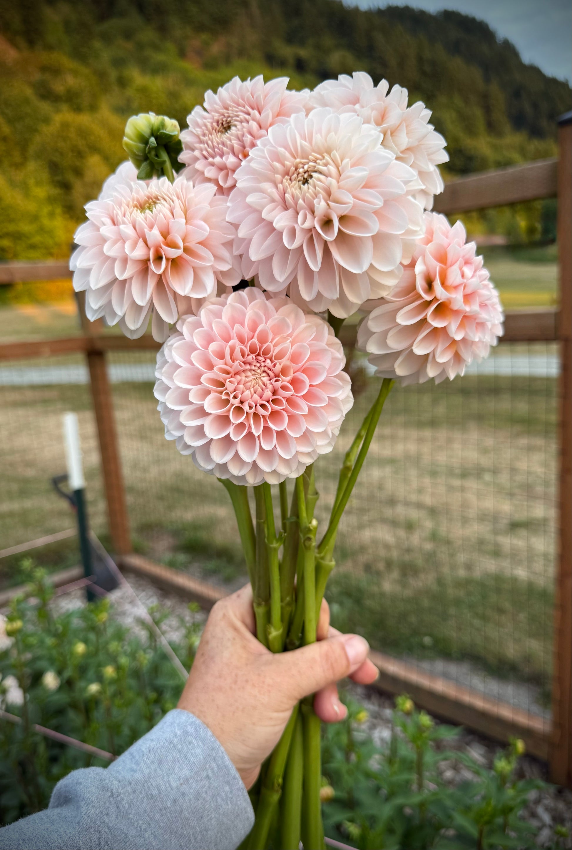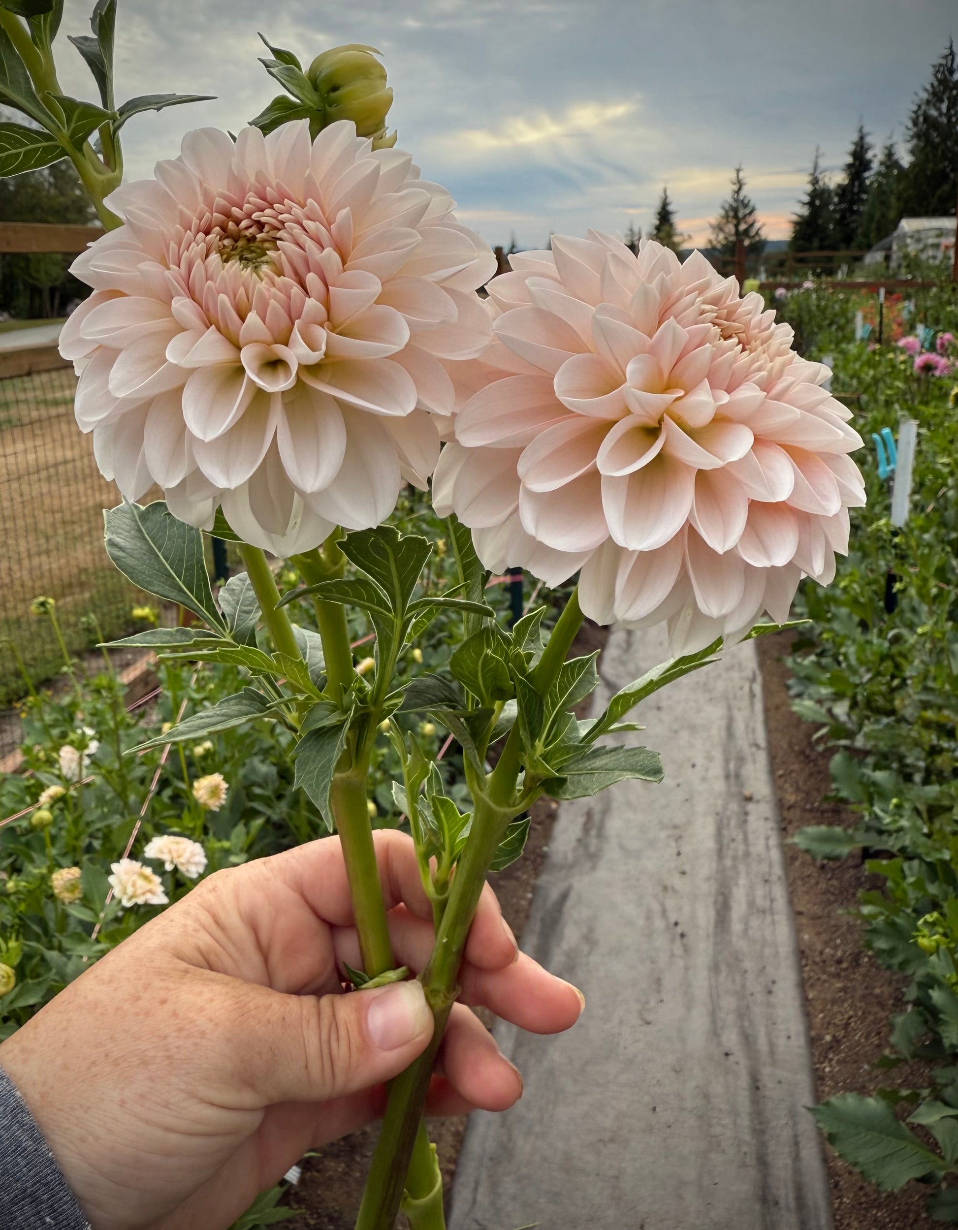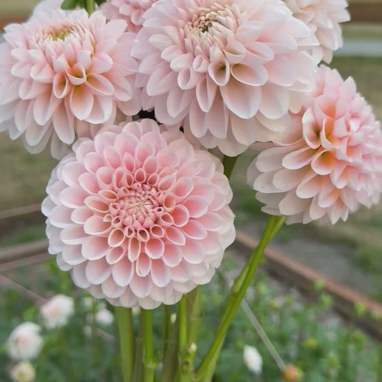 Lee’s Kewpie is an incredibly floriferous 2.5 inch creamy white bloom with green centers and slight creamcicle petals at the base. During the middle of the season I don’t have any green centers, which I miss because I am smitten with the green centers on Kewpie. It works beautifully in arrangements and really compliments any blooms it’s paired with. Wedding designers love everything about Kewpie. Plant height 3’. Hybridized by Lee Hemmings Carlton of Goldenrod Gardens and released in 2023.