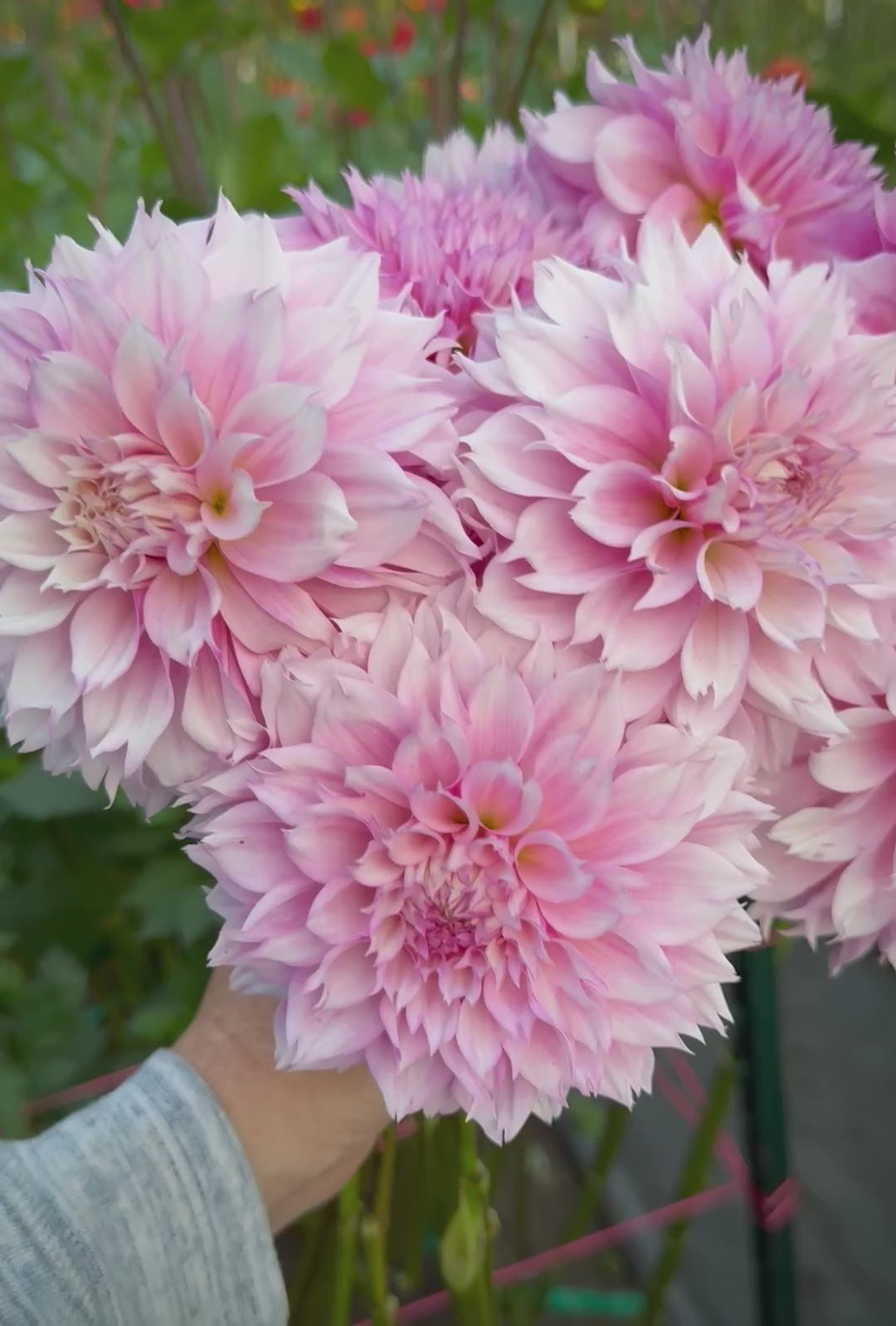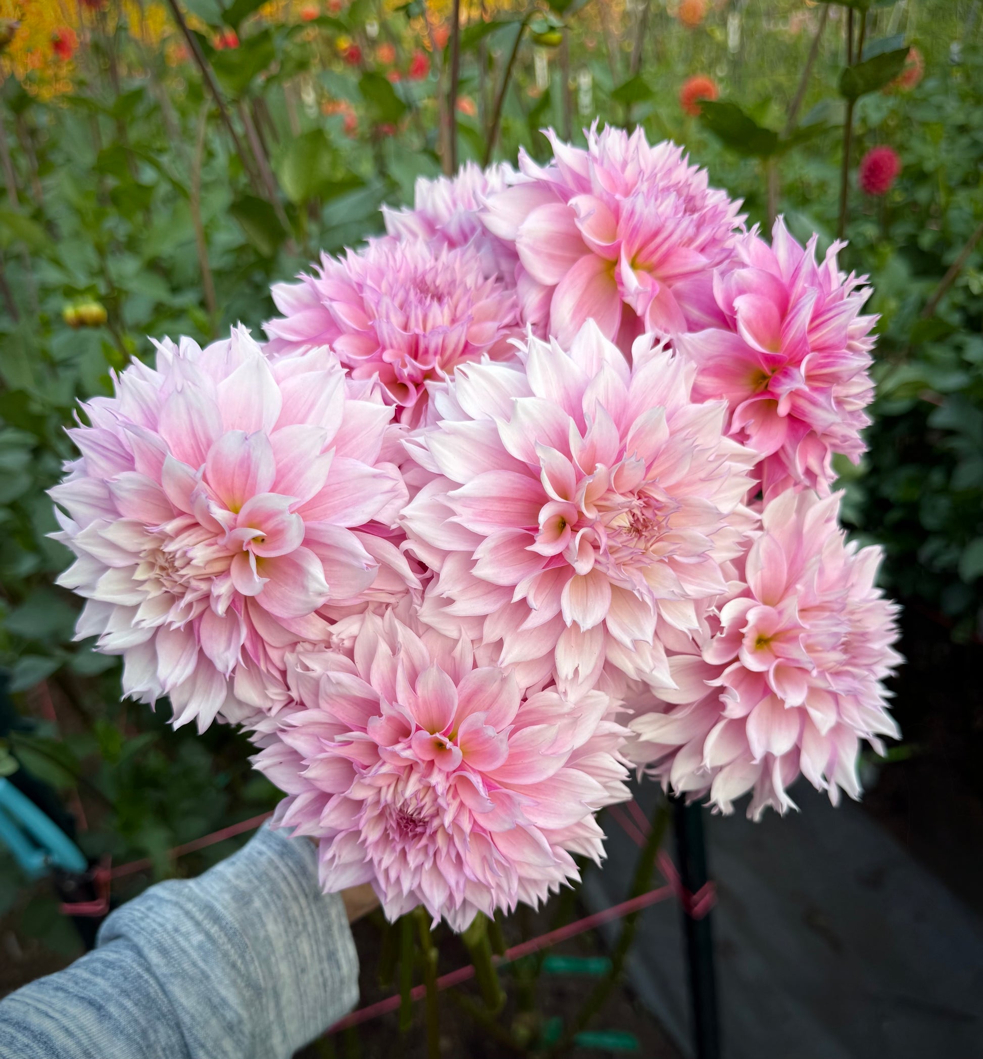 Lee’s Sweet Tooth is a heavy producer that is one of the most consistent bloomers I grow. Perfectly placed petals with split ends make up loads of 4 inch blooms in the perfect shades of creamy pink blush. Long stems and vase life. Flowers left on the plant seem to last forever. Plant height 4’. Hybridized by Lee Hemmings Carlton of Goldenrod Gardens and released in 2023.