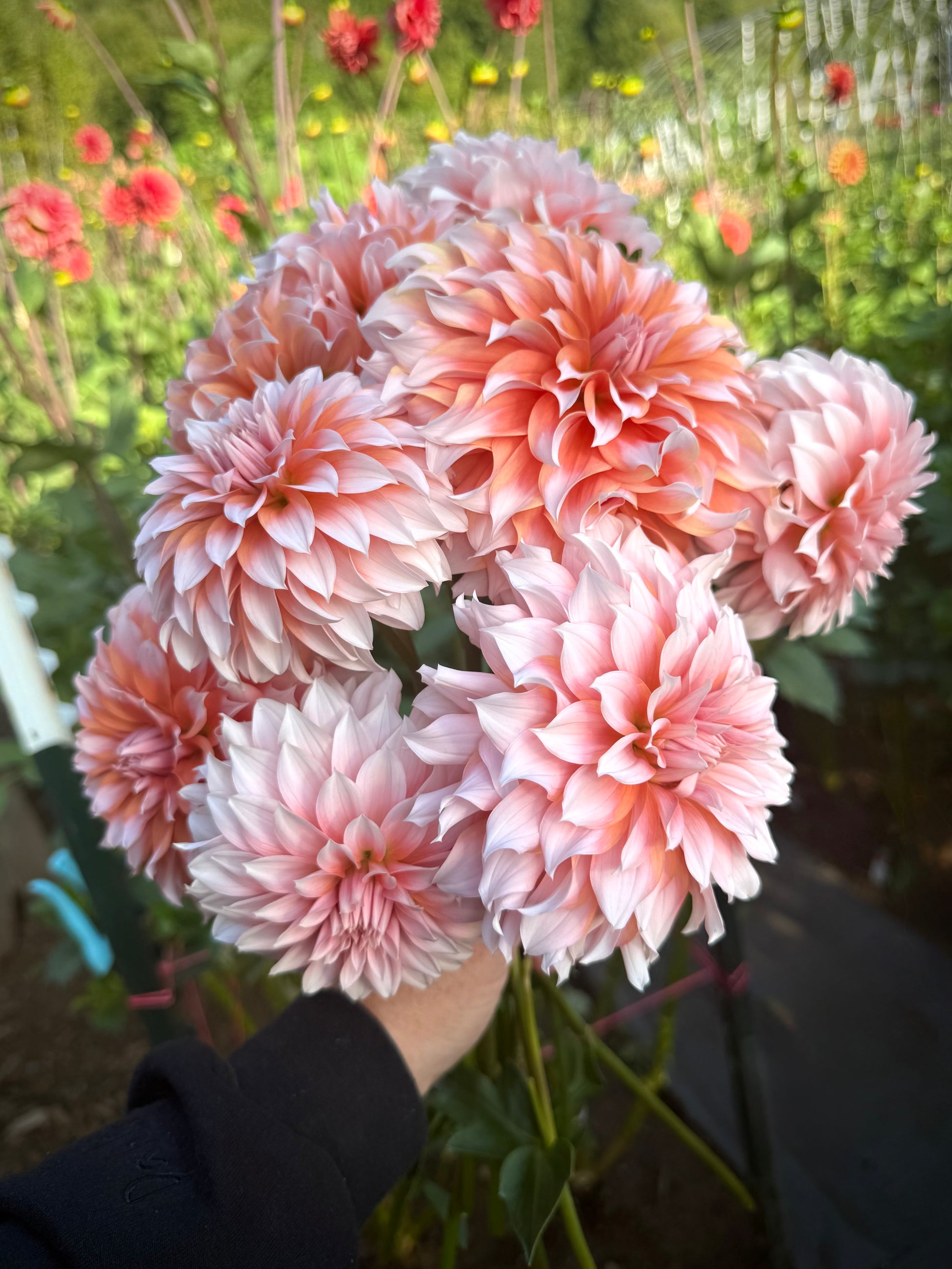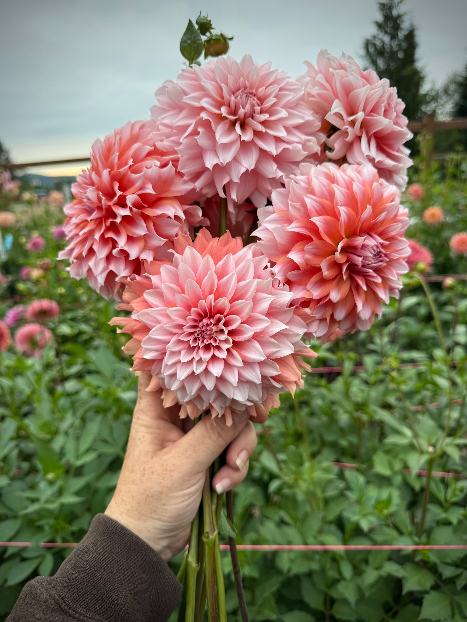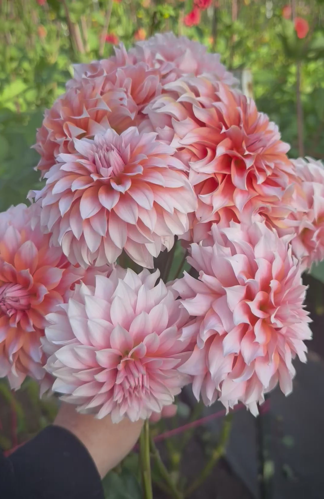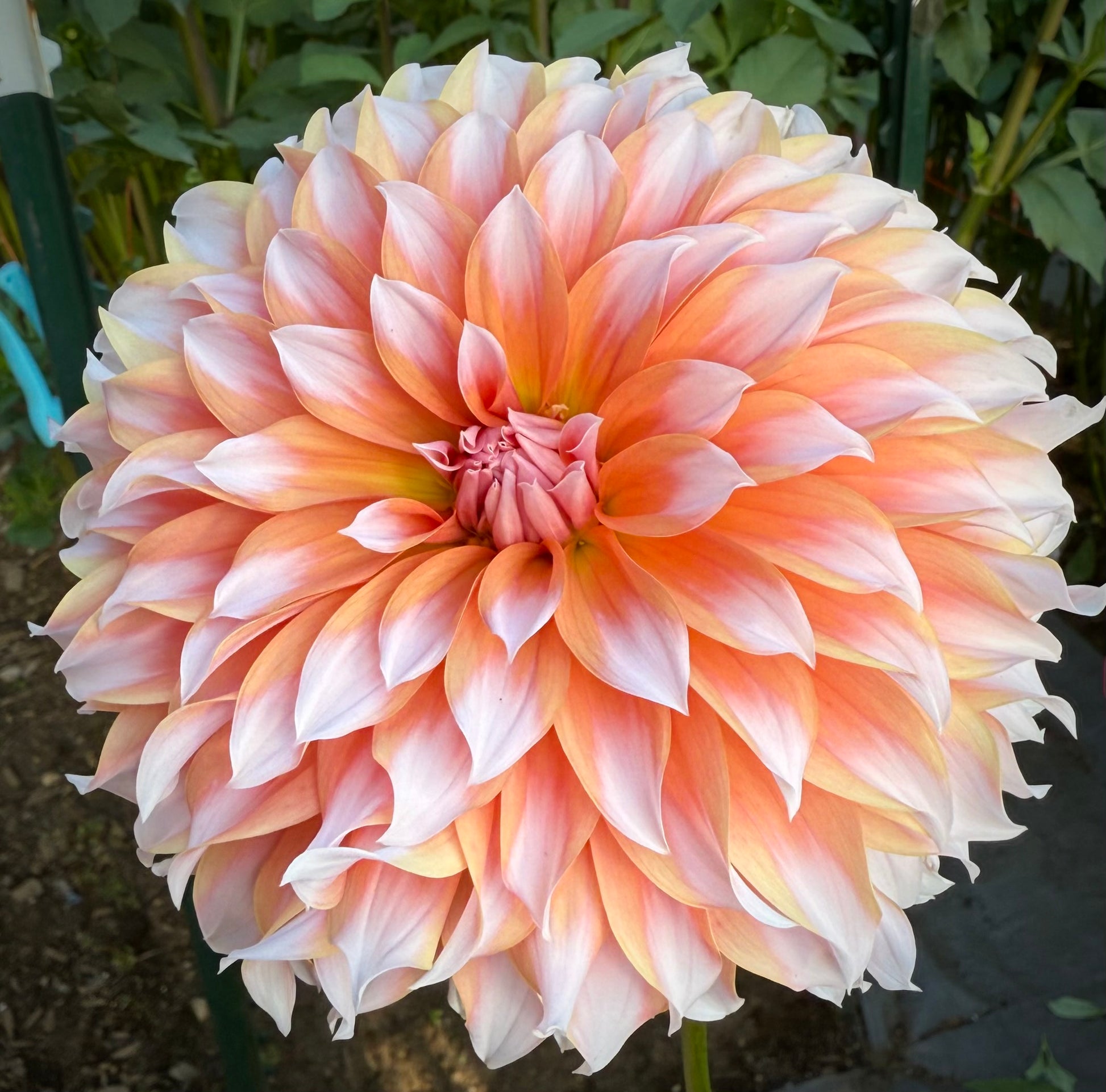 Lee’s Two Step is a beautiful 4 inch bicolor bloom that has shades of peaches and cream. No two blooms are alike. Make sure to cut deep and disbud to encourage stronger stems. Bloom connection is better later in the season, and can be weak when starting out. Plant height 4’. Hybridized by Lee Hemmings Carlton of Goldenrod Gardens and released in 2024.