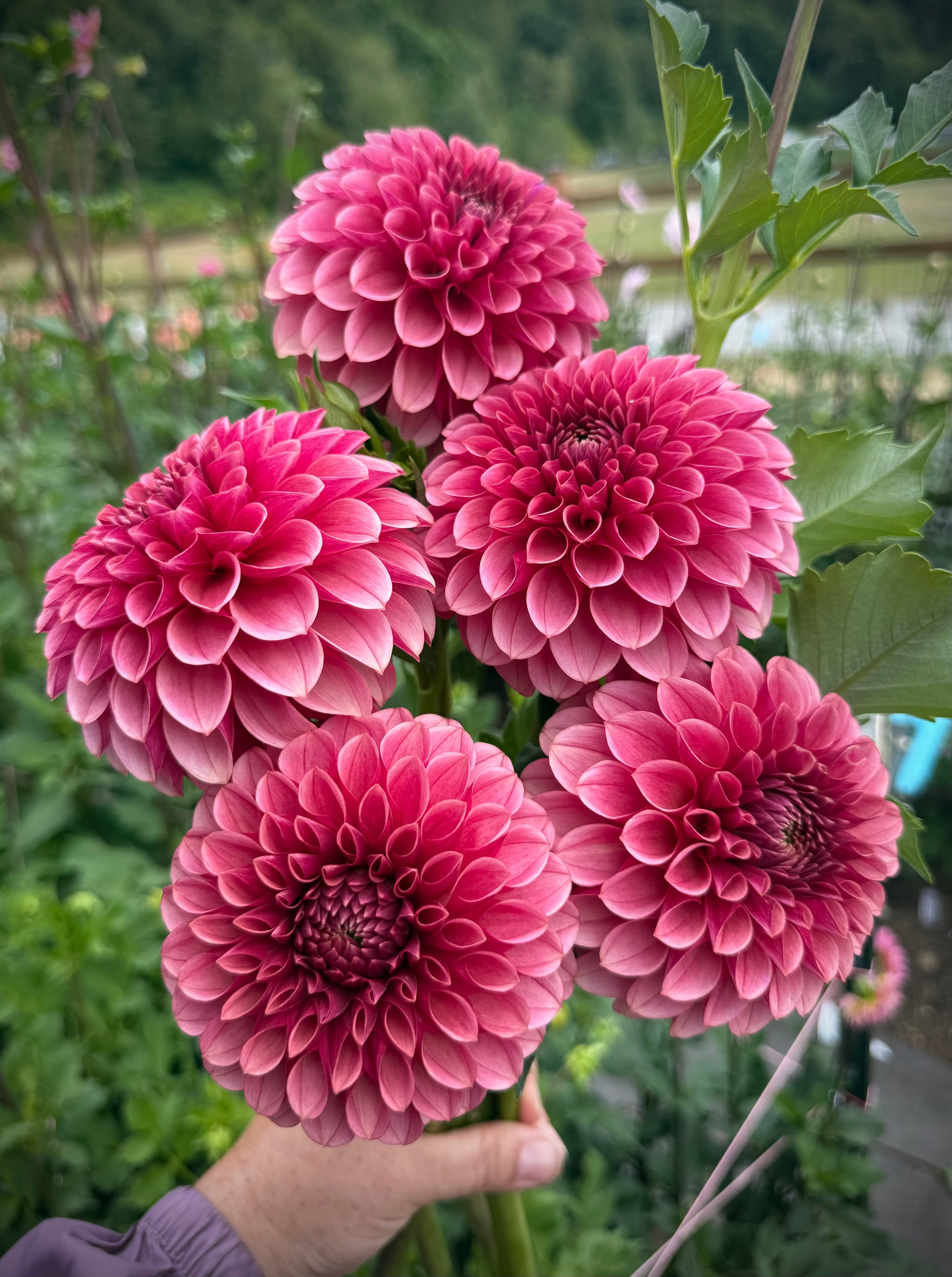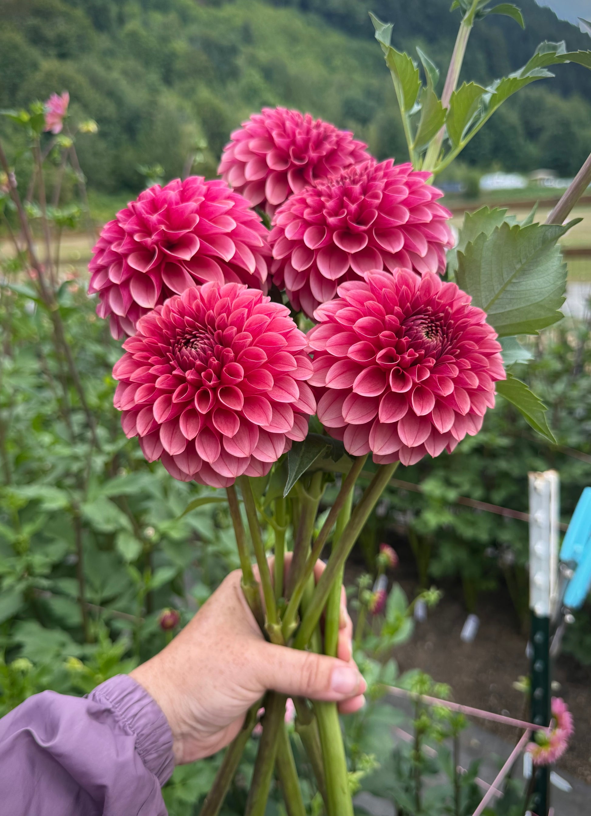 Levi’s Blood Moon. Words don’t do this dahlia justice. One of my top three favorite of Levi’s with blooms averaging 3.5 - 4 inches in the perfect, show stopping ball form. Incredibly rich raspberry rose tones with the most beautiful petal detail. Each bloom is packed with perfectly layered petals that lighten slightly at the tips, giving the flowers a luminous, dimensional look. The plants produce long, strong stems with perfect angles, never clock faced. Ideal for cutting, and the blooms hold their shape beautifully, making them a favorite for bouquets and arrangements.