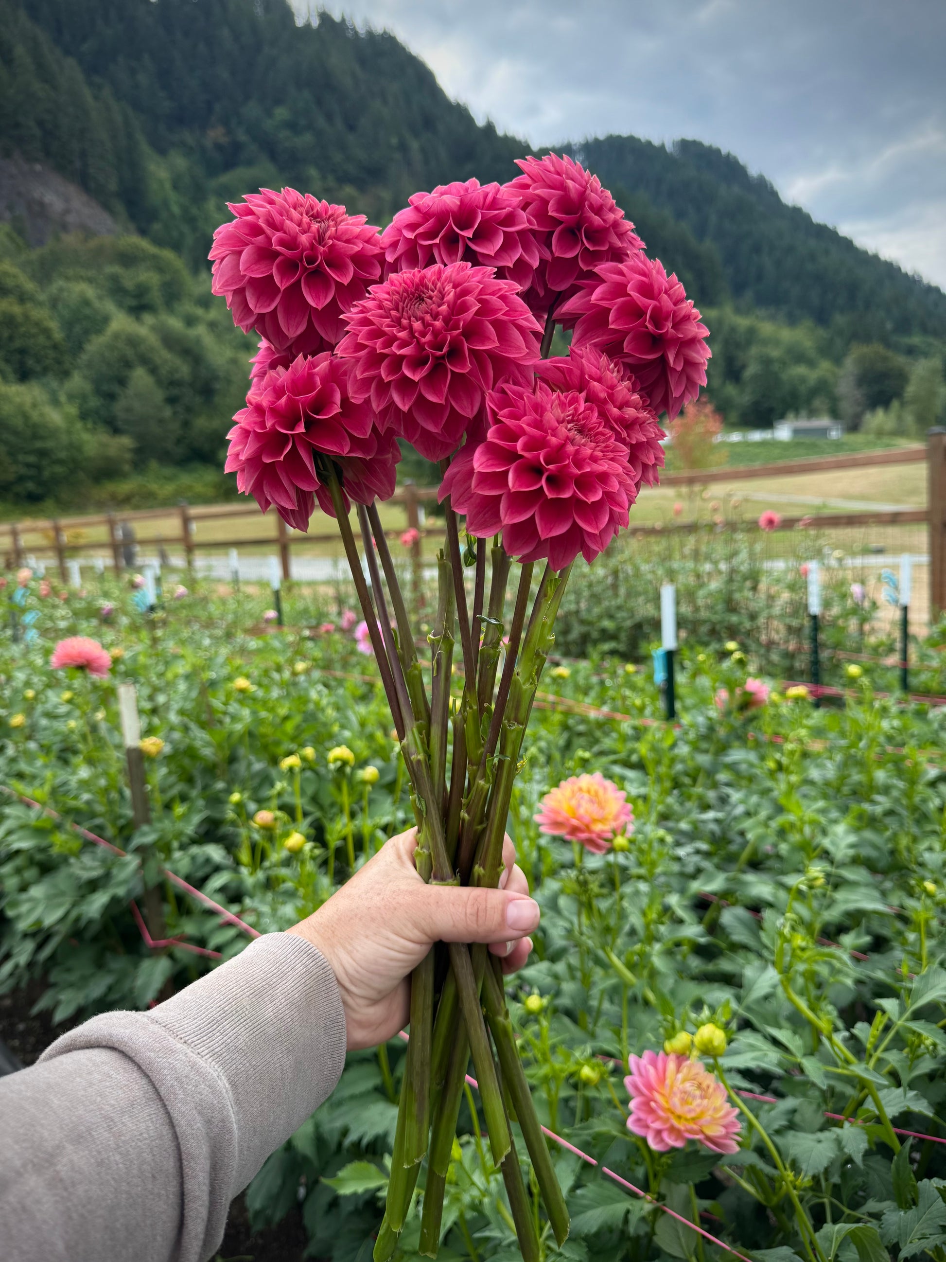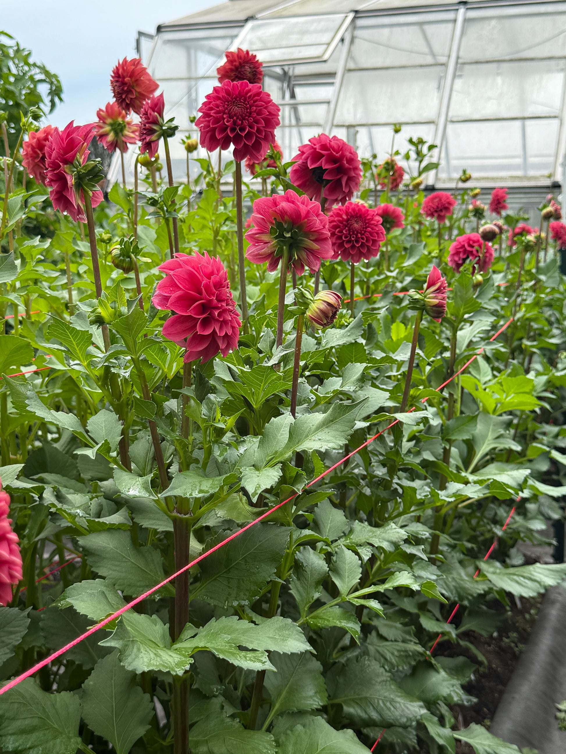 While trialing Melon, it was one of the most impressive varieties I have grown. First, it is a dream when propagating. The foliage is a luscious dark green with wavy, distinctive leaves. The depth of color and petal detail on Levi’s Melon is incredible; deep mauve raspberry with beautifully shaped petals that reach completely to the back of the bloom at full maturity. Blooms are mostly 3.5 inches depending on disbudding. If you want larger blooms, disbud. However, it isn’t necessary unless desired. Long, dark, thin stems could not get any more sturdy. Great bloom connection and perfect 45° angles consistently. There isn’t anything about Melon that I can criticize. I will grow so many more of her this coming season. Plant height 4’. Hybridized by Levi Tremblay and set to be released in 2026.