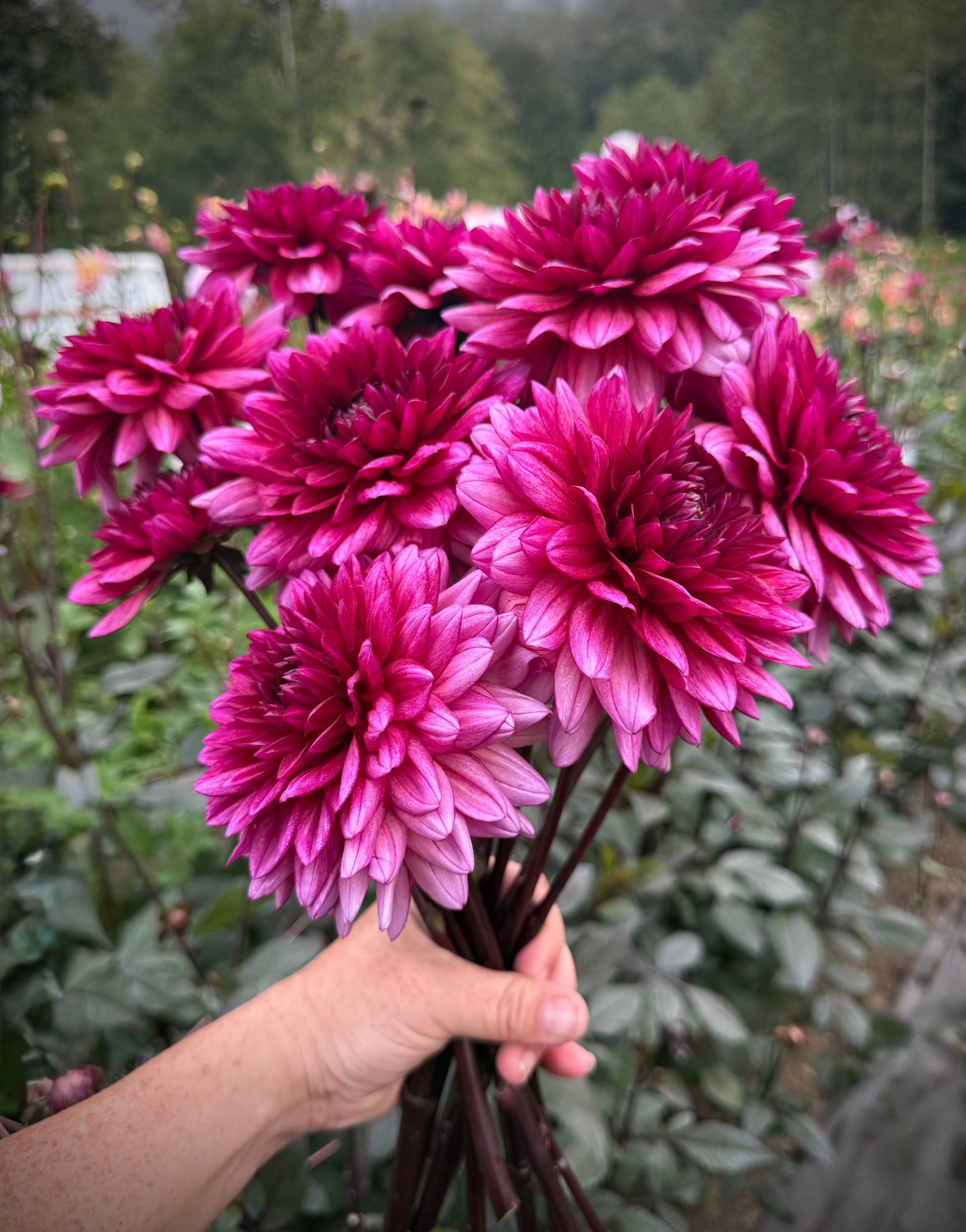 100% my top 5 favorite in the garden. I would grow this only for the outstanding foliage, but the blooms are just as breathtaking. Captivating 4 - 5 inch blooms in shades of mauve raspberry and blackberry tones with centers slightly darker than the outer petals. Long stems, great vase life. Absolutely stunning in arrangements. The contrast between the almost black stems and gorgeous moody blooms is simply to die for. Great tuber producer. Excellent focal point to any arrangement. Don't sleep on Molly Raven. She is worth the hype. Hybridized by Sarah Raven in the UK. Plant height 3.5’.