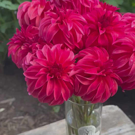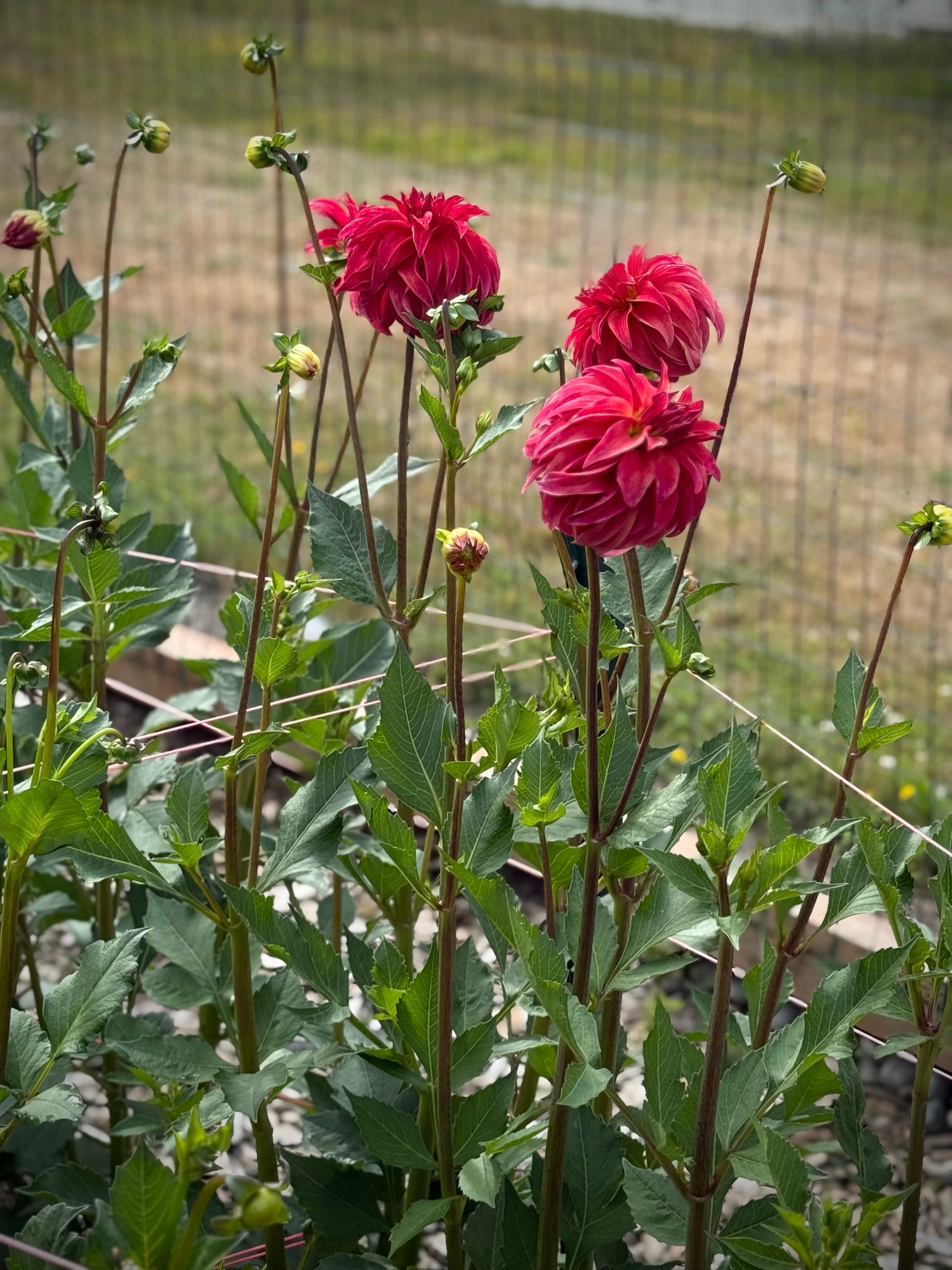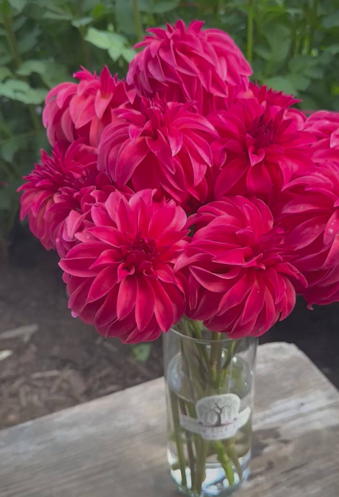 Ms Prissy is a stunner. Bold, stellar 4 inch blooms in shades of saturated raspberry, watermelon and coral tones. Long, wavy petals that push all the way back and around, creating a perfect focal point at any angle when in a bouquet. Productive with strong stems, great angles and bloom connection. Reliable and high impact variety that brings depth and drama to arrangements. Blooms can vary as the season starts and progresses, sometimes throwing quite a bit of sunset orange and yellow. It takes Ms Prissy just a few weeks to really produce consistent, gorgeous blooms. But once she does, she produces right up until frost. Plant height 4’.