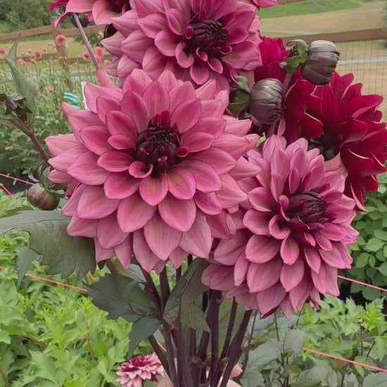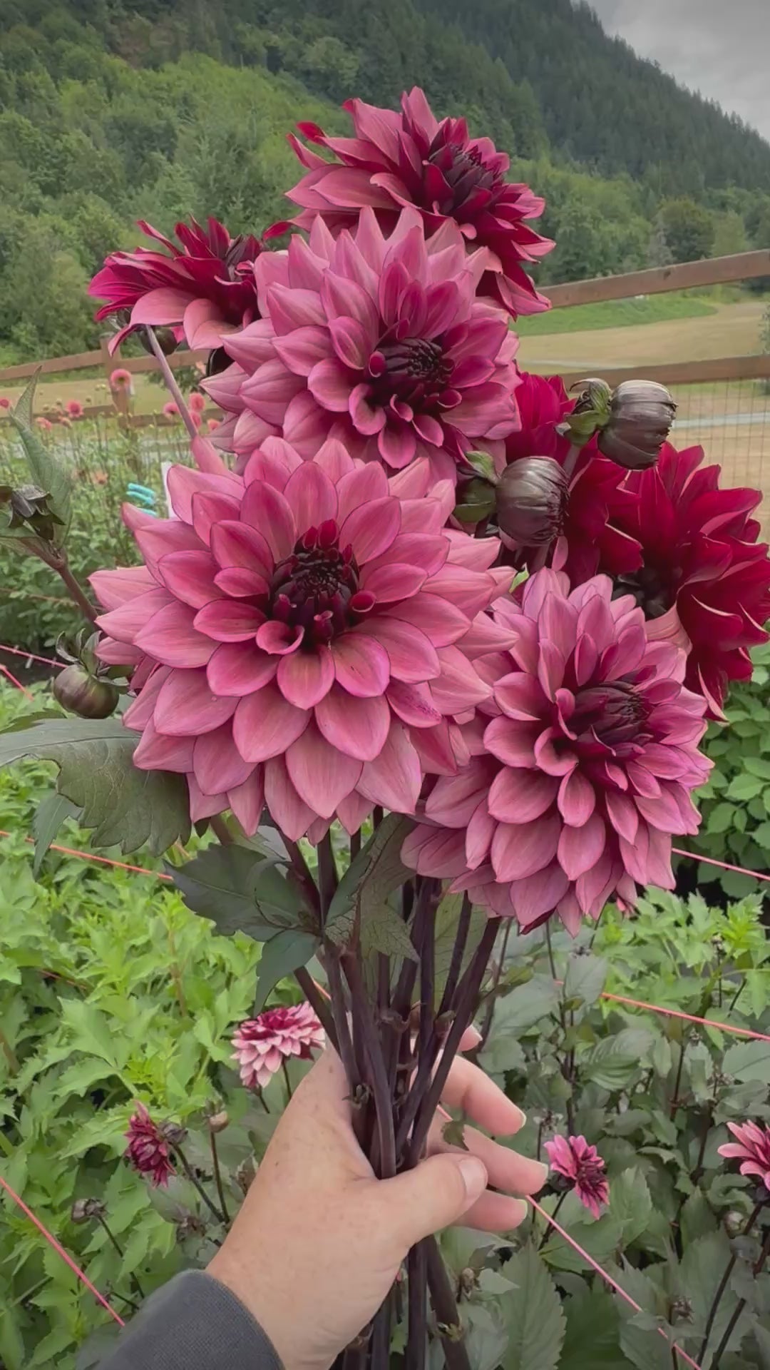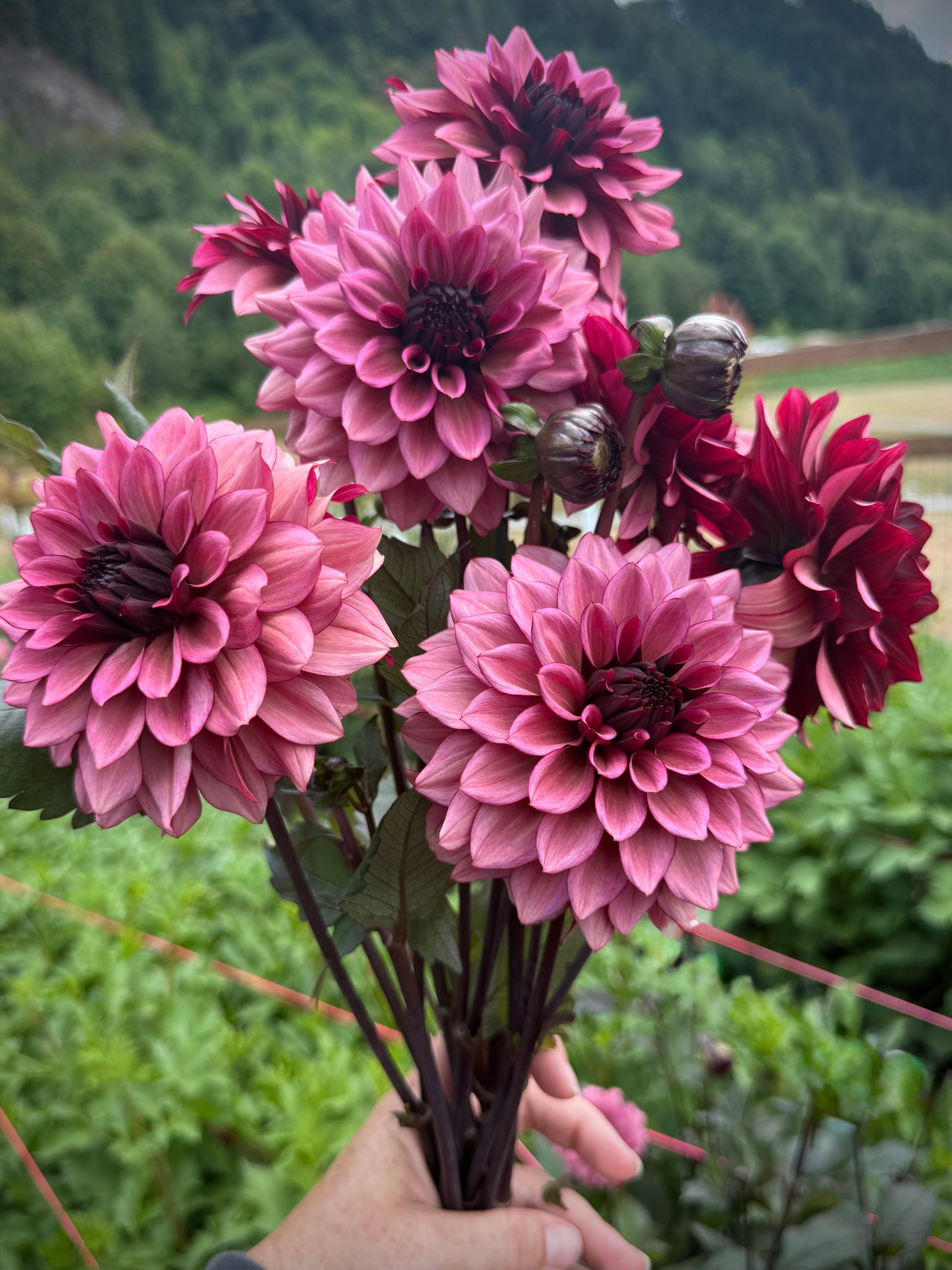 Night Silence is another favorite in the garden. Dark foliage which is beautiful in itself, but then you see the 4.5 inch dark, dusty raspberry blooms and fall even deeper in love. Night Silence has a gorgeous dark petal reverse which creates the darker center and is pushed over the top with detailed petals in shades of chocolate raspberry and shimmery mauve. Stunningly beautiful and so prolific. Long, strong stems and perfect plant height at 3.5’. Perfect for fall, moody or dark bouquets. I’ll grow this ‘till the cows come home, and I don’t have any cows.