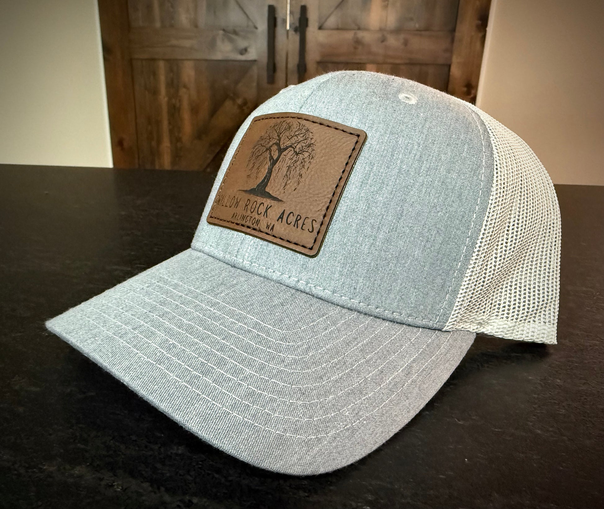 Richardson 112 Adjustable trucker hat in Heather Grey/Light Grey. Leather patch with stitching surround.