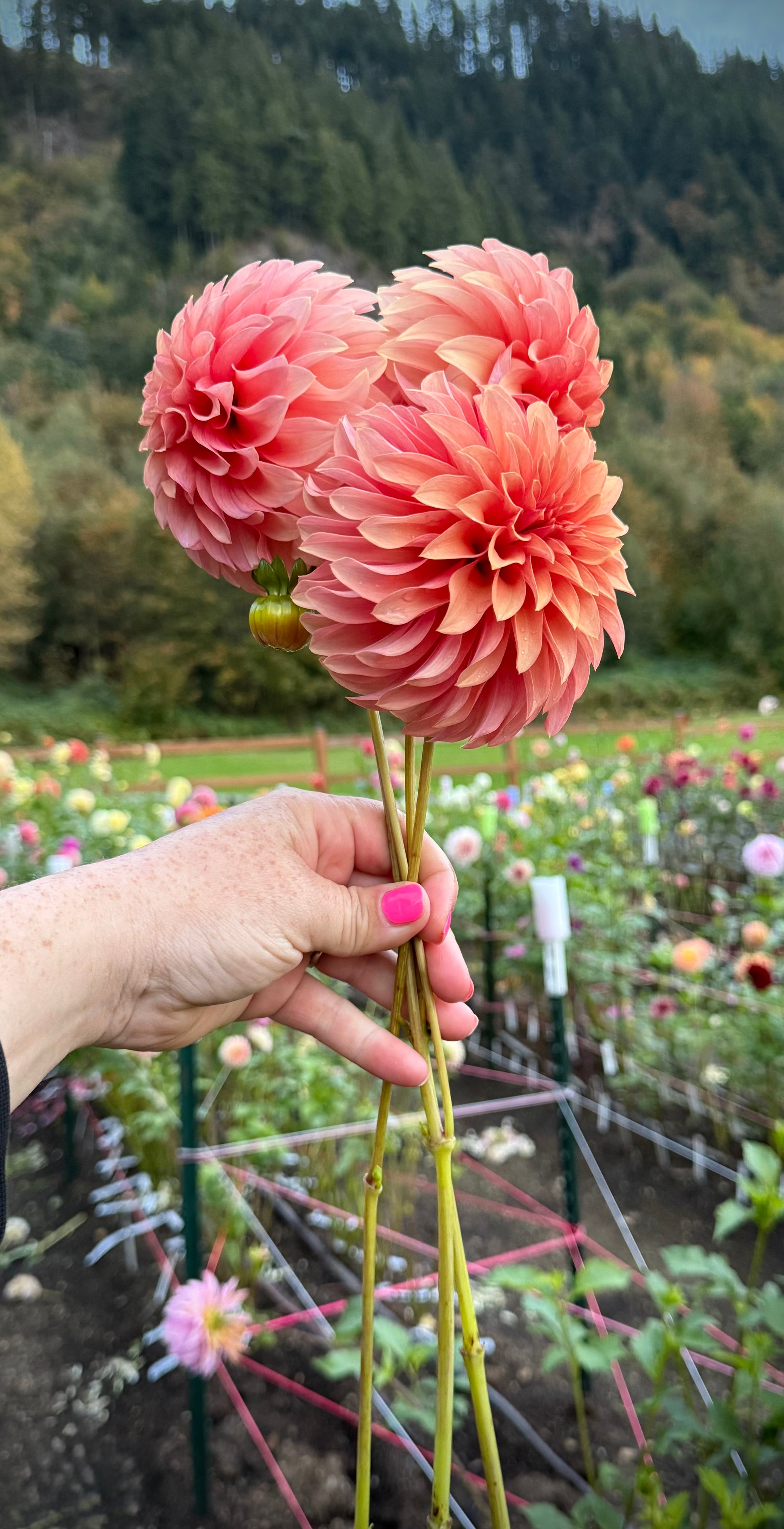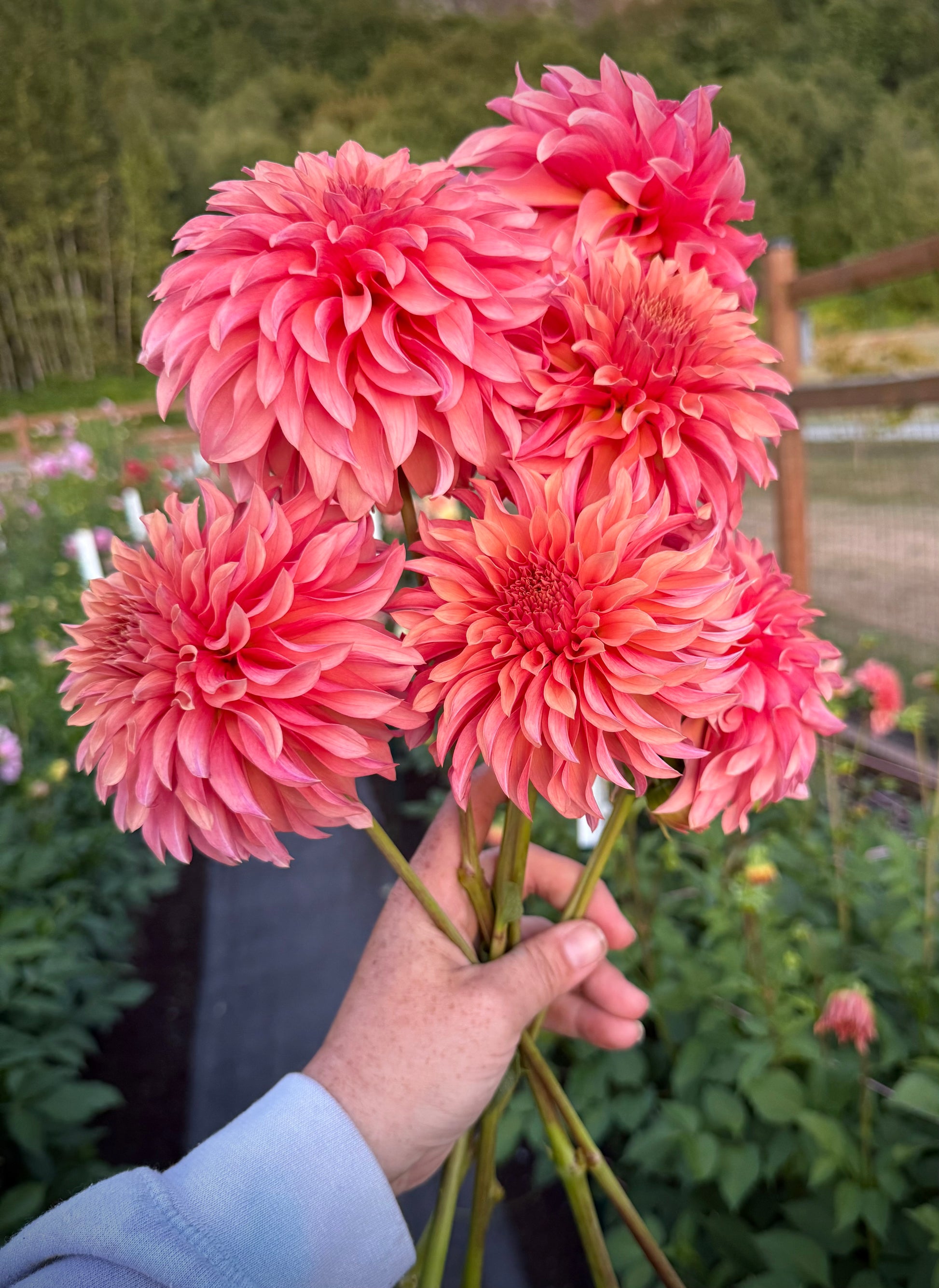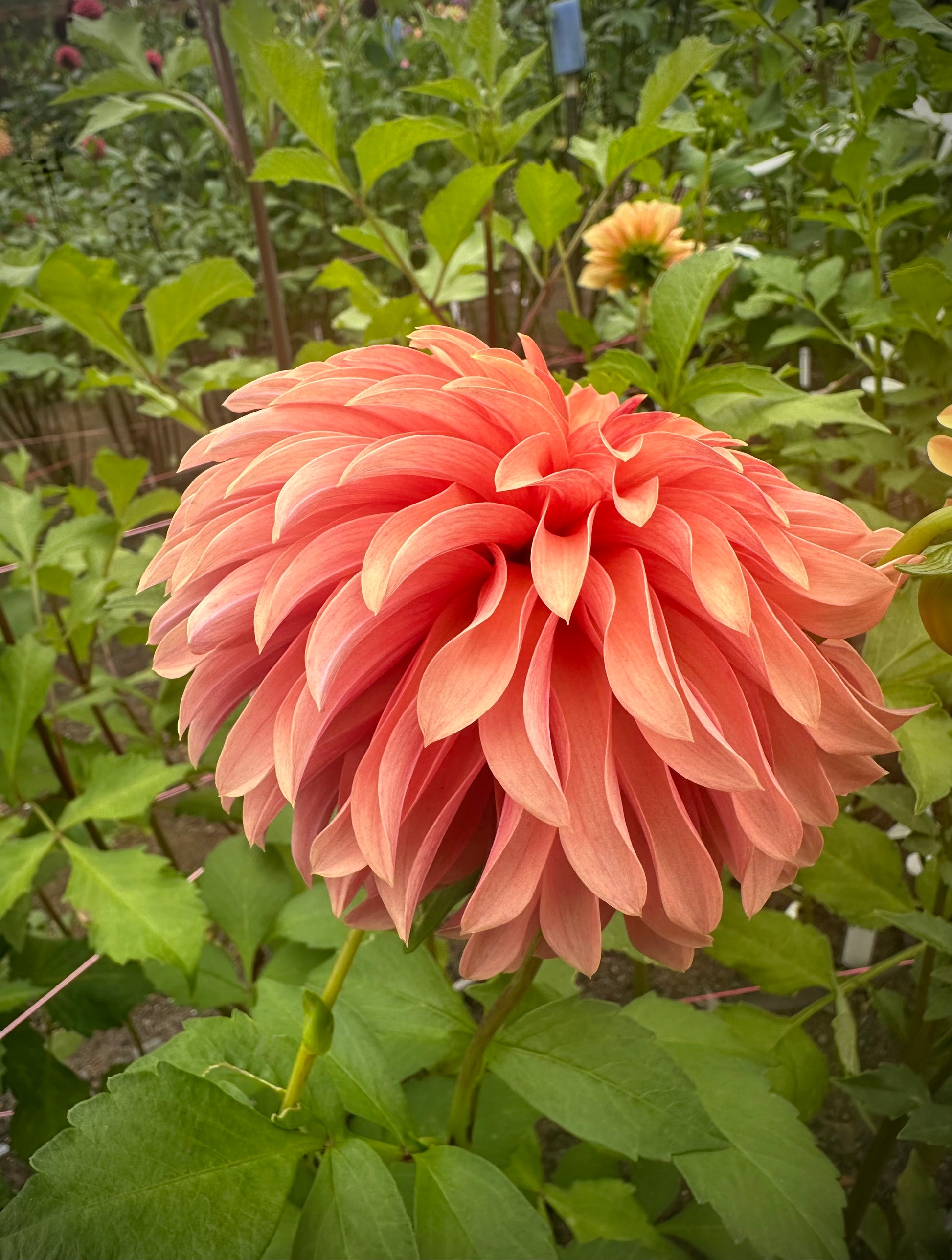 Stunning stellar bloom from River’s. 5.5 inch peachy coral, with hints of lavender during the coolest part of the season. River’s Can’t Elope holds its perfect stellar form with petals reaching all the way to the back of every bloom. Amazing tuber producer from cuttings and tubers alike. Hybridized by River’s Dahlias. Plant height 4’.
