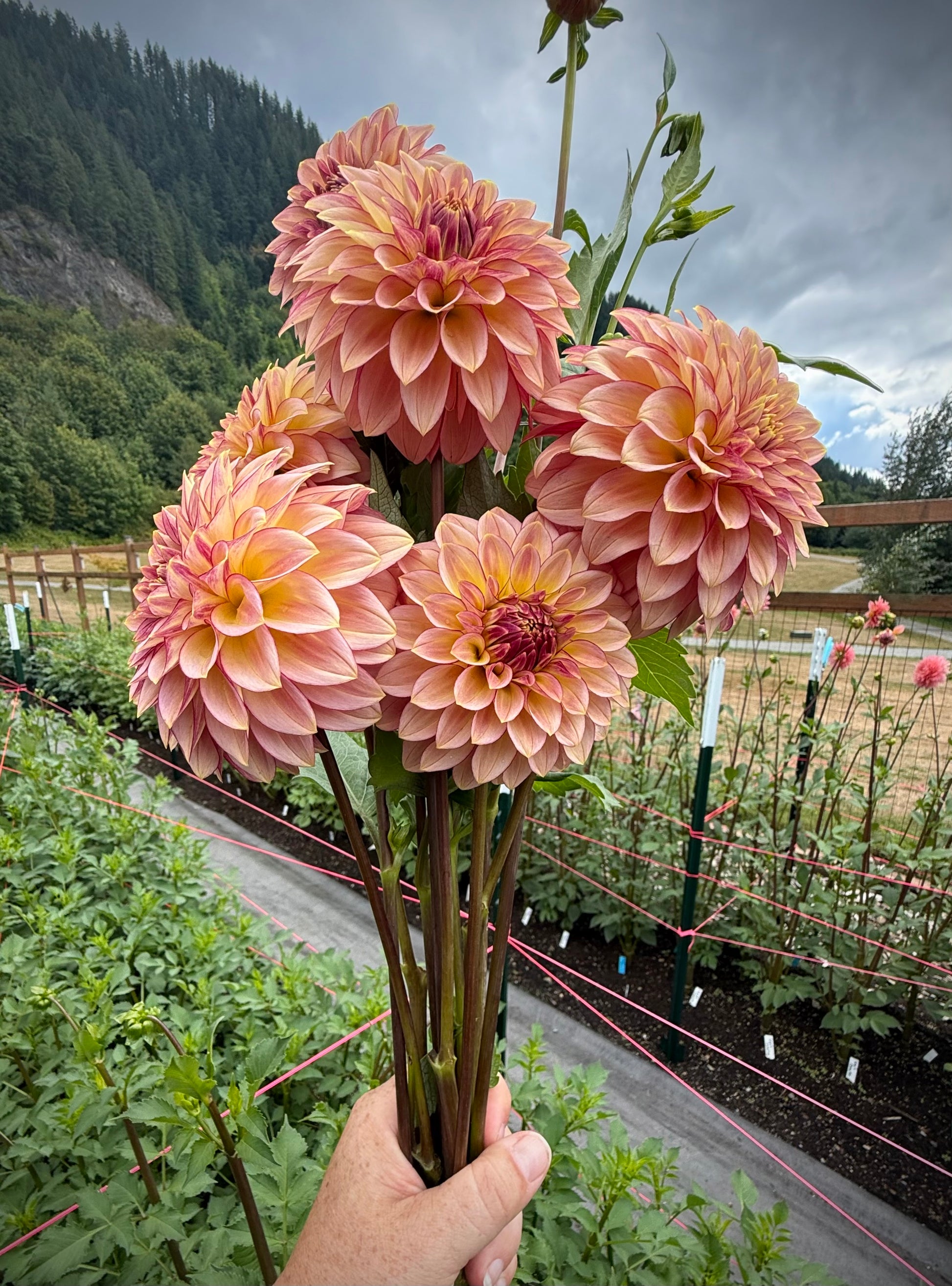 This variety produces long, strong, dark stems that are perfect for arranging, and the blooms hold beautifully in the vase. Plants are vigorous, productive, and consistently give uniform flowers throughout the season that hold their center beautifully. Whether you grow for bouquets or simply want a standout bloom in the field, RM Raspberry Twinkle is one of those varieties that stops you in your tracks. Incredibly prolific, easy to propagate, and produces beautiful tubers from cuttings and tubers alike. Plant height 4.5’. Hybridized by River Merle Farms and introduced in 2025.
