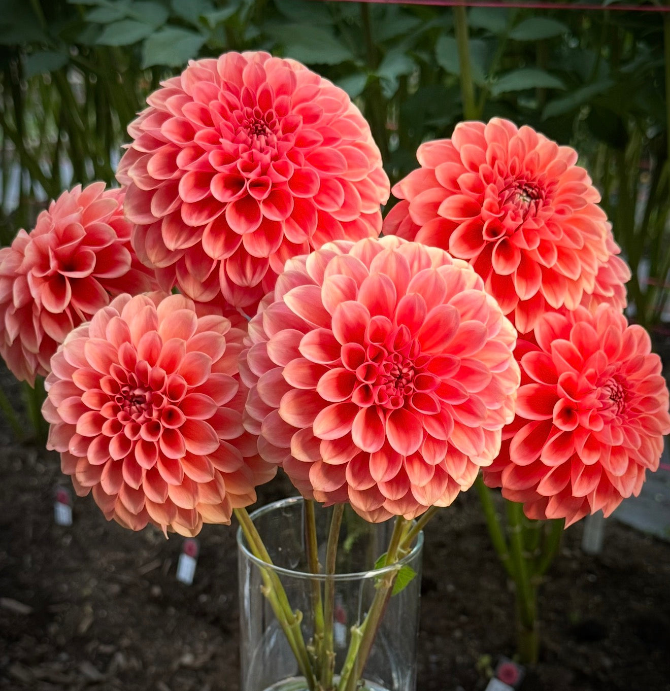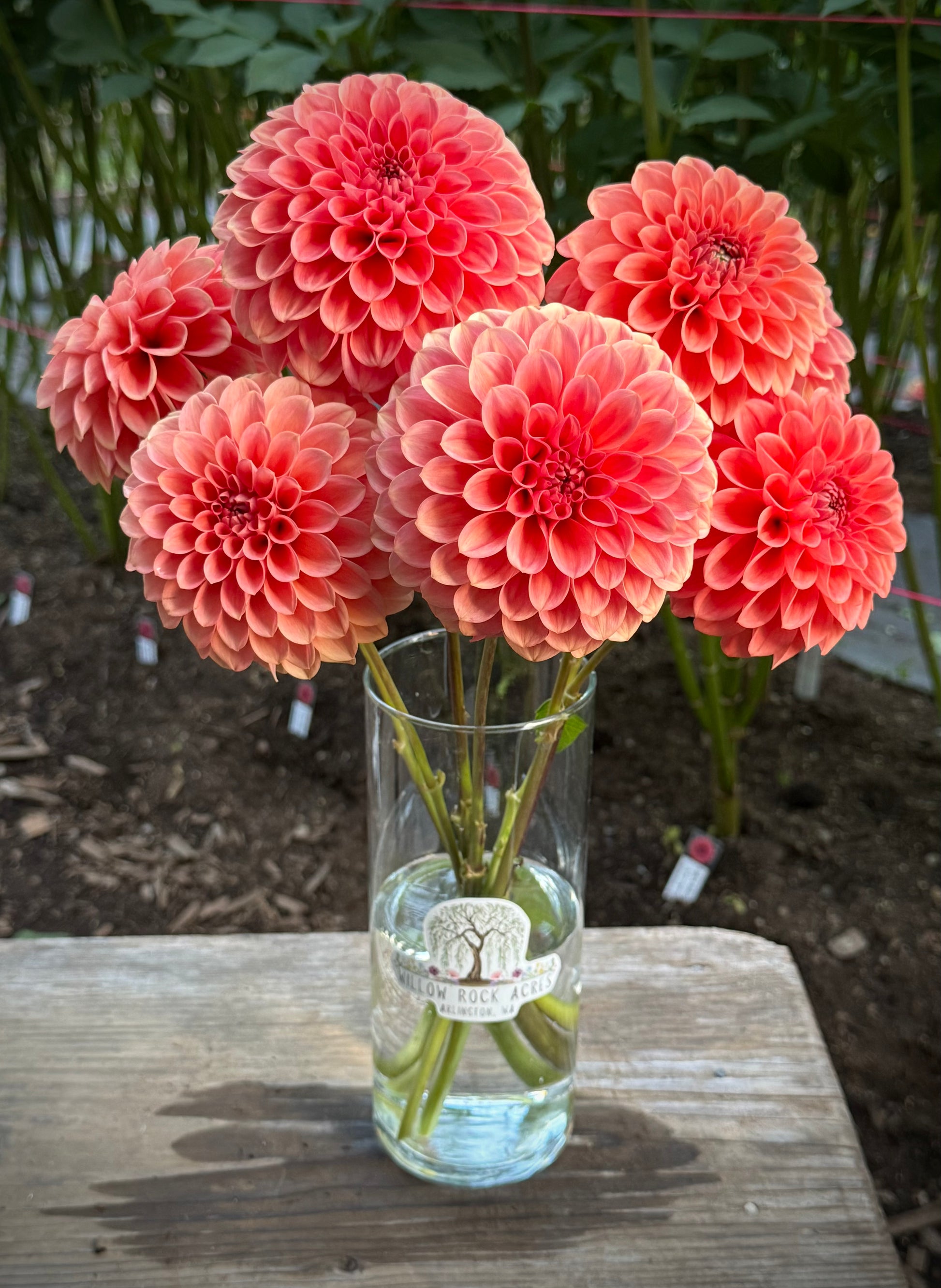 RM Tarnished is one of my favorite rusty, coral colored blooms. It is consistently pumping out beautiful 4 inch flowers that hold their form perfectly and are a great addition to landscaping. Tarnished is a shorter plant growing around 3.5 ft for me, but still pumps out long stemmed beauties all season long for cut flowers. Color fades to a beautiful creamsicle during the warmest time of the season. When it’s cool at the end of the season, it almost has a pink hue to it. Great tuber producer from both cuttings and tubers, and easy to divide.