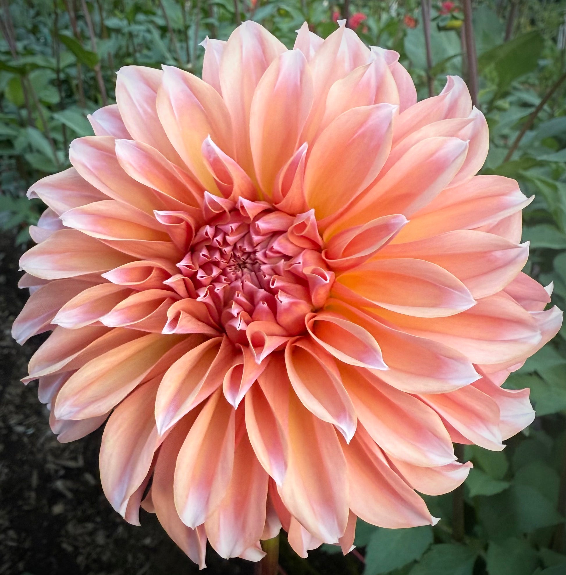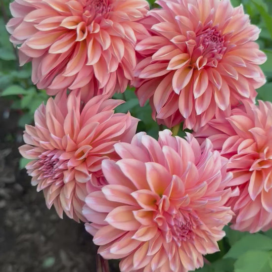 RM Whirleygig blew away all of my expectations. Soft peachy coral 4 inch blooms with warm apricot undertones and beautifully layered, whirled petals. Perfect creamy blush at each petal tip. The flowers have a luminous glow in the garden and are especially eye catching in bouquets, blending effortlessly with pastels and warm fall tones. Plants are strong and productive with nice stems, making this a great choice for both cutting and landscapes.