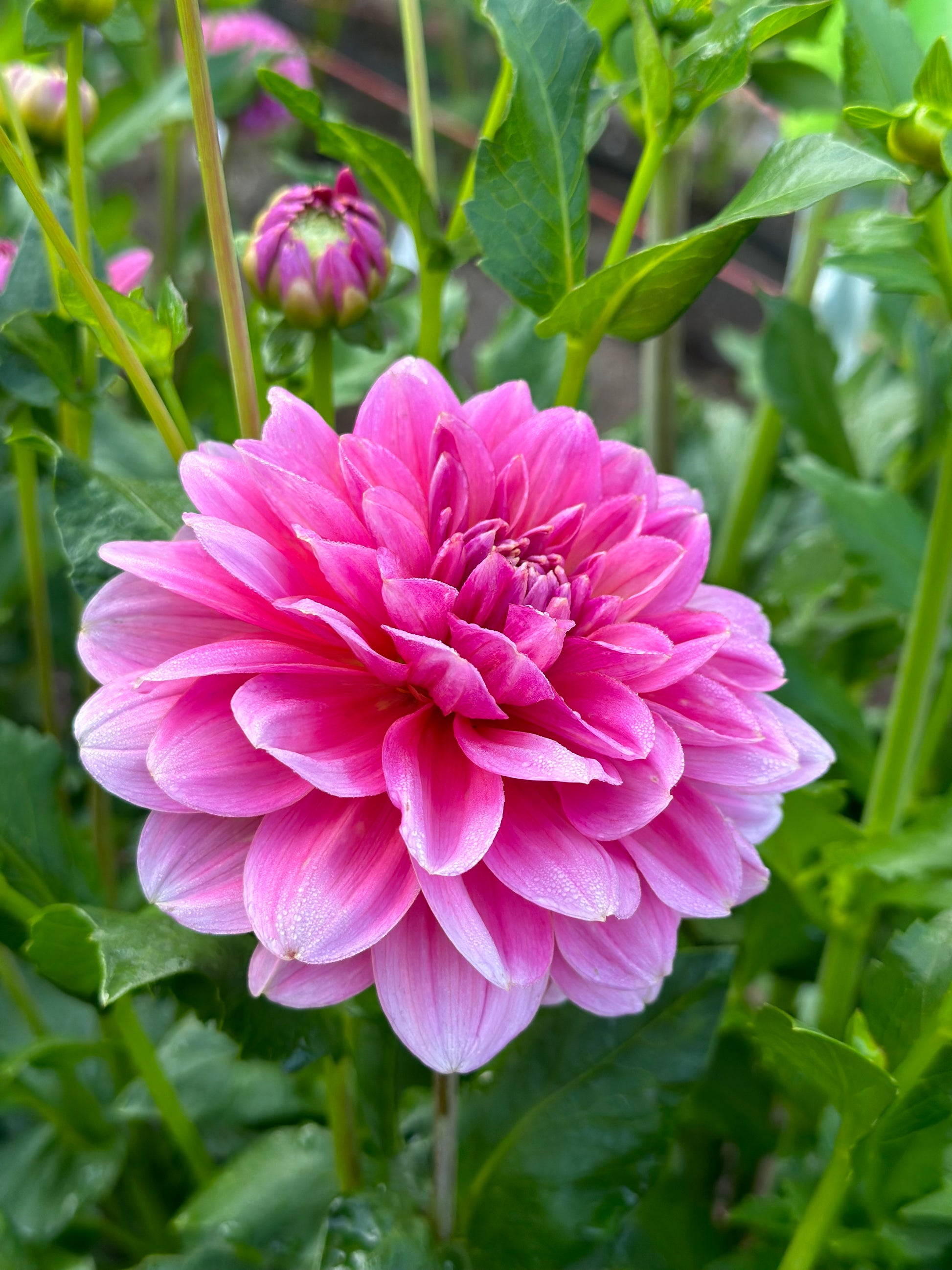 Stunning wispy blooms in all shades of pink ranging from dusty to vibrant. Bloom size 5 inches. Long, strong stems and so many blooms that shimmer in the sun. Disbud and cut deep for strong stems later in the season. Great tuber producer & cut flower. Plant height 4.5’.