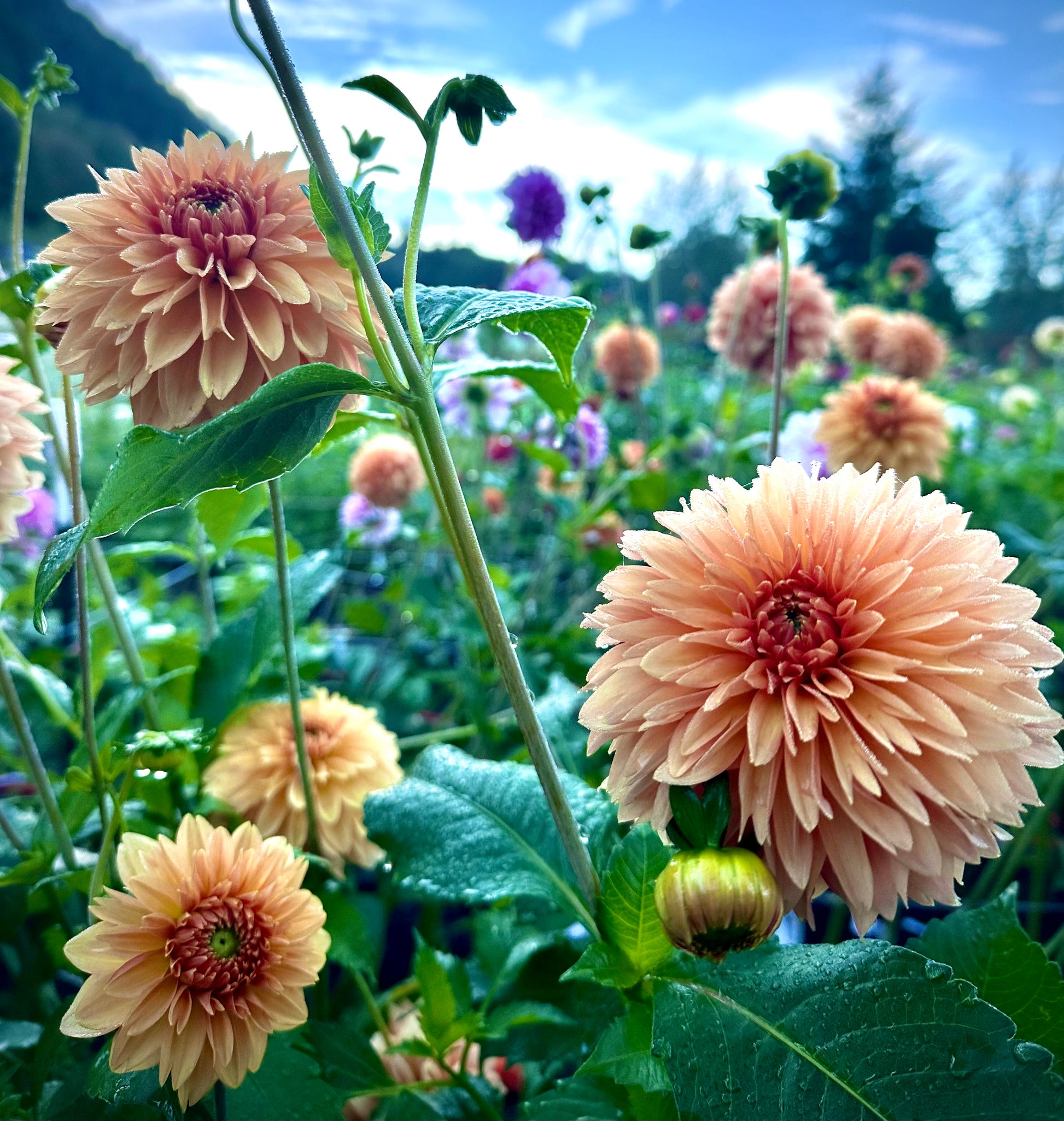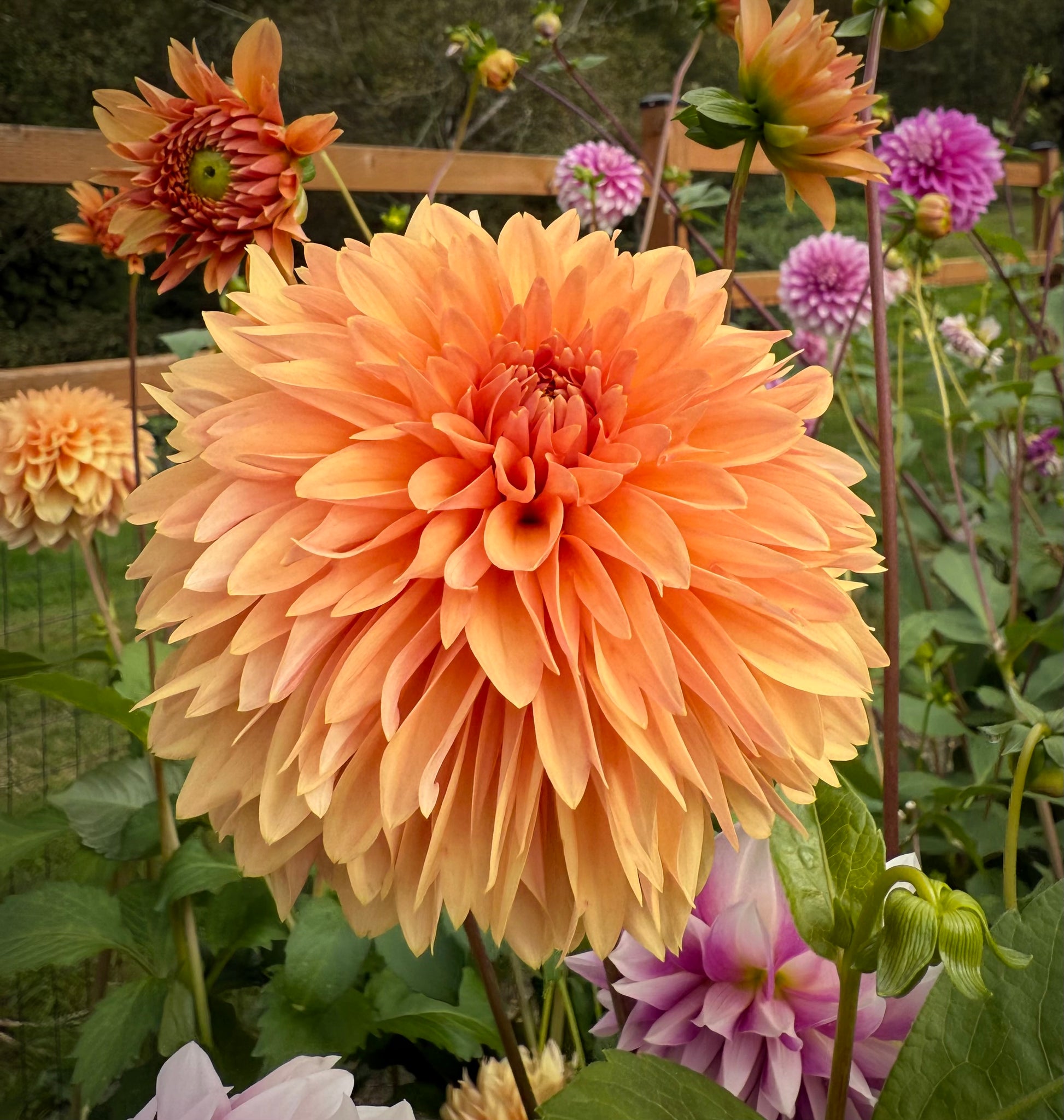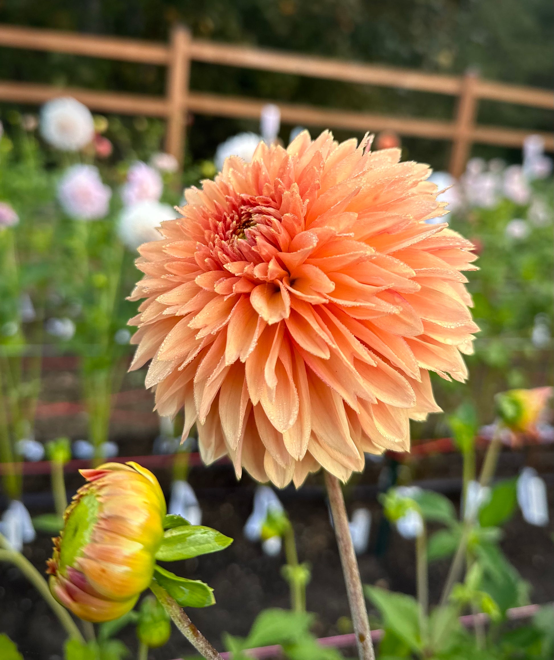 Verrone’s 14-30 is a show stopping 5 inch dahlia that glows in warm shades of apricot and tangerine. Its large, fully double blooms feature layers of long, slightly incurved petals that reach all the way to the back of the blooms. The vibrant color makes a dramatic statement both in the garden and in arrangements. Great tuber producer. Plants are tall and sturdy, typically reaching 5 feet, with excellent bloom production throughout the season.